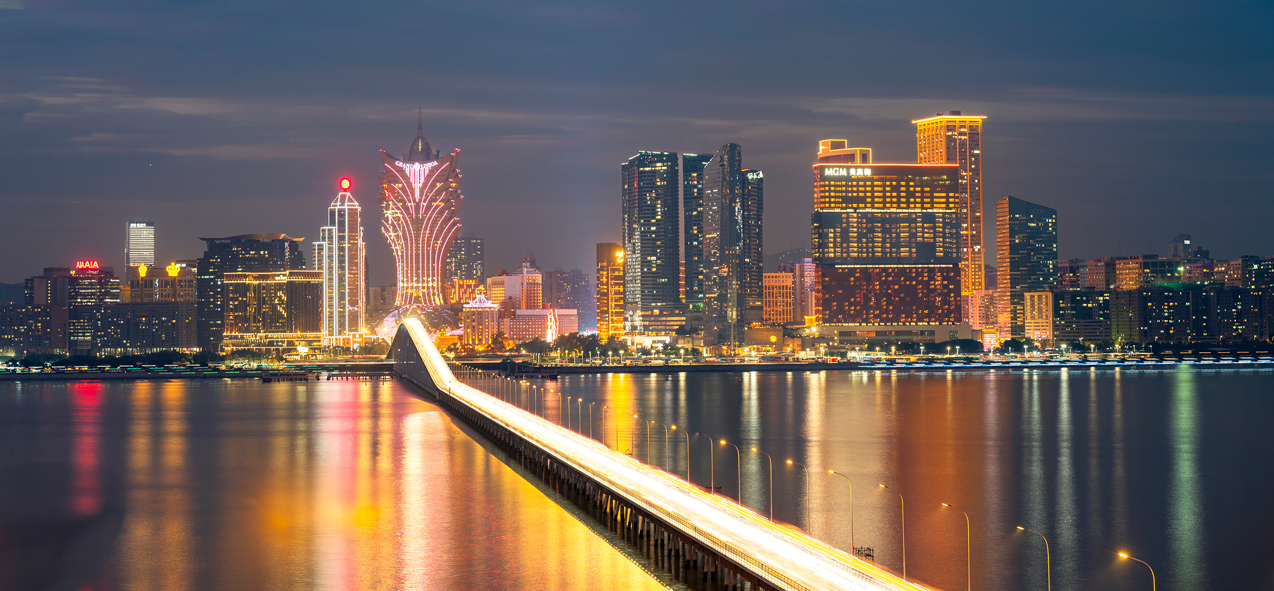 澳门的金光大道,新葡京的鎏金穹顶与澳凼大桥上的车流织就的光轨,成了独属这座城的璀璨风景线。尼康ZR,24-120镜头拍摄。