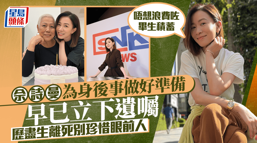 港姐出身的佘诗曼加入 TVB 后一直备受力捧,曾被誉为 “TVB 六大花旦” 之一。她先后参演多部剧集,被称为 “港剧女王”;入行第 28 年的佘诗曼,更在历届台庆颁奖典礼上累计斩获 15 个个人奖项,数量位居全台之首。2023 年,她凭借《新闻女王》成为 “四料视后”,是首位三度拿下多料视后的女演员。此后,佘诗曼在内地发展多年。早年凭借剧集《延禧攻略》,她身价暴涨,吸金能力惊人,曾被指身家早已破亿。2011 年,她登上 “福布斯中国名人榜”,人气排名第 67 位、收入排名第 57 位,年收入高达 2360 万元人民币。再加上原本在香港投资的至少 5 个物业,她绝对是圈中的 “富婆”。在浮华背后,经历过家人生病以及前辈离世的佘诗曼表示,自己对生死有了更深的领悟,并不讳言已立下遗嘱。佘诗曼 5 岁时,父亲因交通意外离世。当时佘妈妈怀着遗腹子,独自一人母兼父职抚养三个子女,曾一度陷入经济困境,直到拿到亡夫的意外保险金后,生活才有所改善。佘诗曼曾表示,成长过程中从未见过妈妈气馁或抱怨辛苦,这让她十分佩服。入行后她一直努力工作,希望能让妈妈过上好日子。佘妈妈的健康曾两度出现问题:早年在夏威夷生活时,因肺部问题接受紧急大手术,心跳和呼吸一度停止 20 秒,医生曾让她做好心理准备;早前妈妈再度传出患病消息,还疑似因接受治疗导致头发脱落。后来佘诗曼坦言,妈妈在一年半前就已生病,今年生日时她许下愿望,希望大家能一起为母亲集气,祝愿她身体健康。佘诗曼的契爷许绍雄于今年 10 月 28 日因病离世。佘诗曼表示早已知晓契爷的病情,也常到医院陪伴他。日前许绍雄的丧礼举行,佘诗曼送的花牌被摆放在靠近家属的位置。她还承诺会照顾契妈和契妹,绝不会因为契爷离世就减少见面次数。历经生死边缘的洗礼后,50 岁的佘诗曼对人生有了深刻体悟,甚至希望能回到 30 岁:“因为 30 多岁时身边发生的都是开心事,比如拍拖、结婚、生孩子。但到了人生另一阶段,要面对很多生离死别,我努力学着调整自己,尽快恢复正常生活。我现在看开了,生老病死是必经之路,人终究要向前走。既然人生这么短暂,应该多做些帮助别人、让自己满足的事,还要更加珍惜眼前人 —— 你永远不知道什么时候会突然失去对方,谁对你好,你就加倍对他好,一定要让他知道,大胆地告诉他‘我在乎你、我把你当好朋友’。”佘诗曼还直言已立下遗嘱:“前段时间立好了。我赚钱这么辛苦,万一我出了什么事,不想让毕生积蓄白白浪费,希望能按照我的意愿分配。” 她透露近年已减少一半工作量,多抽时间陪伴家人:“我现在会找到一个平衡,比如前几天有人约我吃饭,我会先看妈妈的时间,她有空我就陪她一起吃。” 佘诗曼还称,自己早已没有生儿育女的憧憬,但并不觉得这是遗憾。