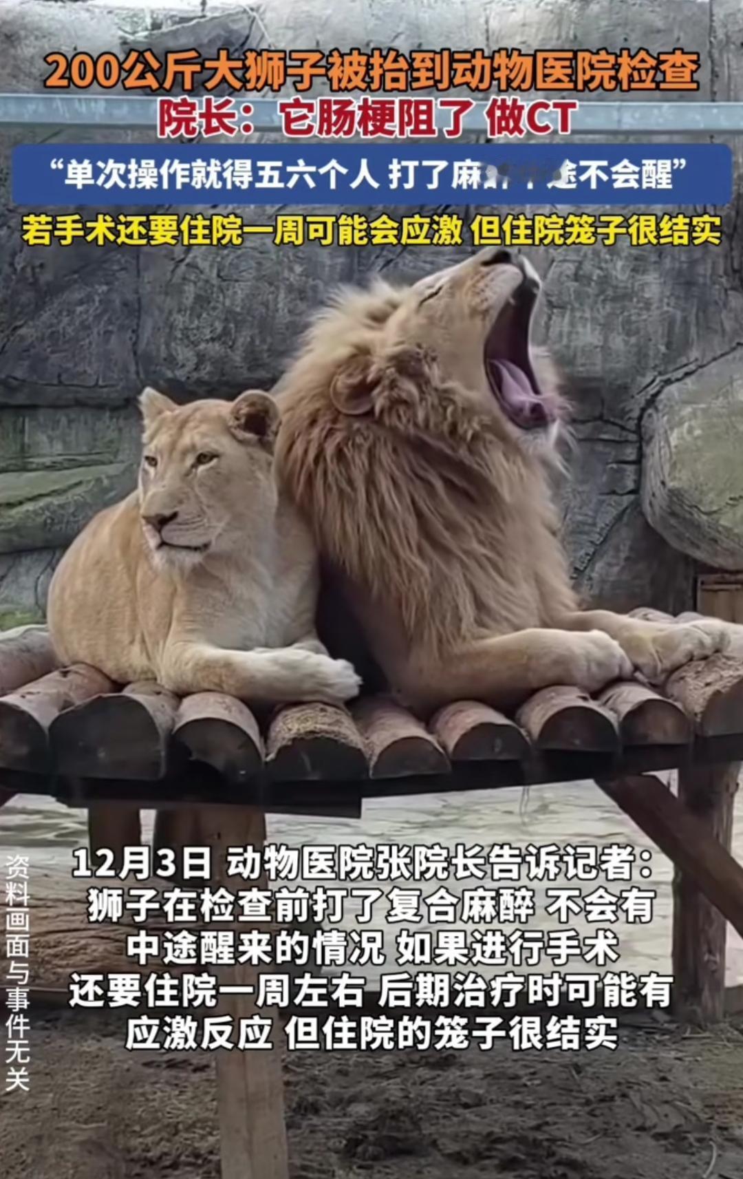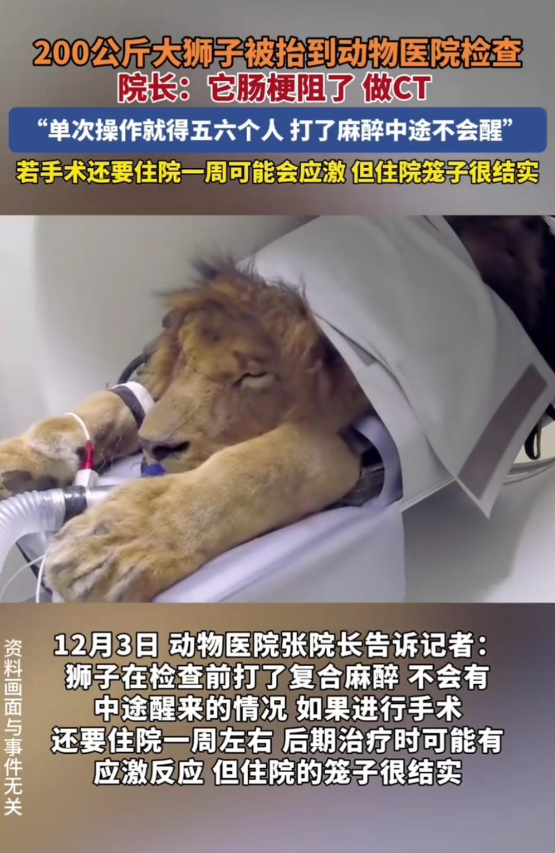 谁能想到,平时在草原上威风凛凛的大狮子,竟乖乖躺宠物医院做CT?这只200公斤的大家伙肠梗阻,五六名医护费好大劲才把它抬上诊疗床。 狮子先打了复合麻醉才敢做检查,爪子上还插着输液管,往日的霸气全没了,只剩乖乖配合治疗的模样。院长说它后续可能要手术,还得住院一周,得时刻提防应激反应,住院笼子都是特制加固的。 我们总觉得猛兽就该无坚不摧,可再强悍的生命,也有需要被照料的时刻。狮子也好,人类也罢,在病痛面前,众生其实都一样脆弱。