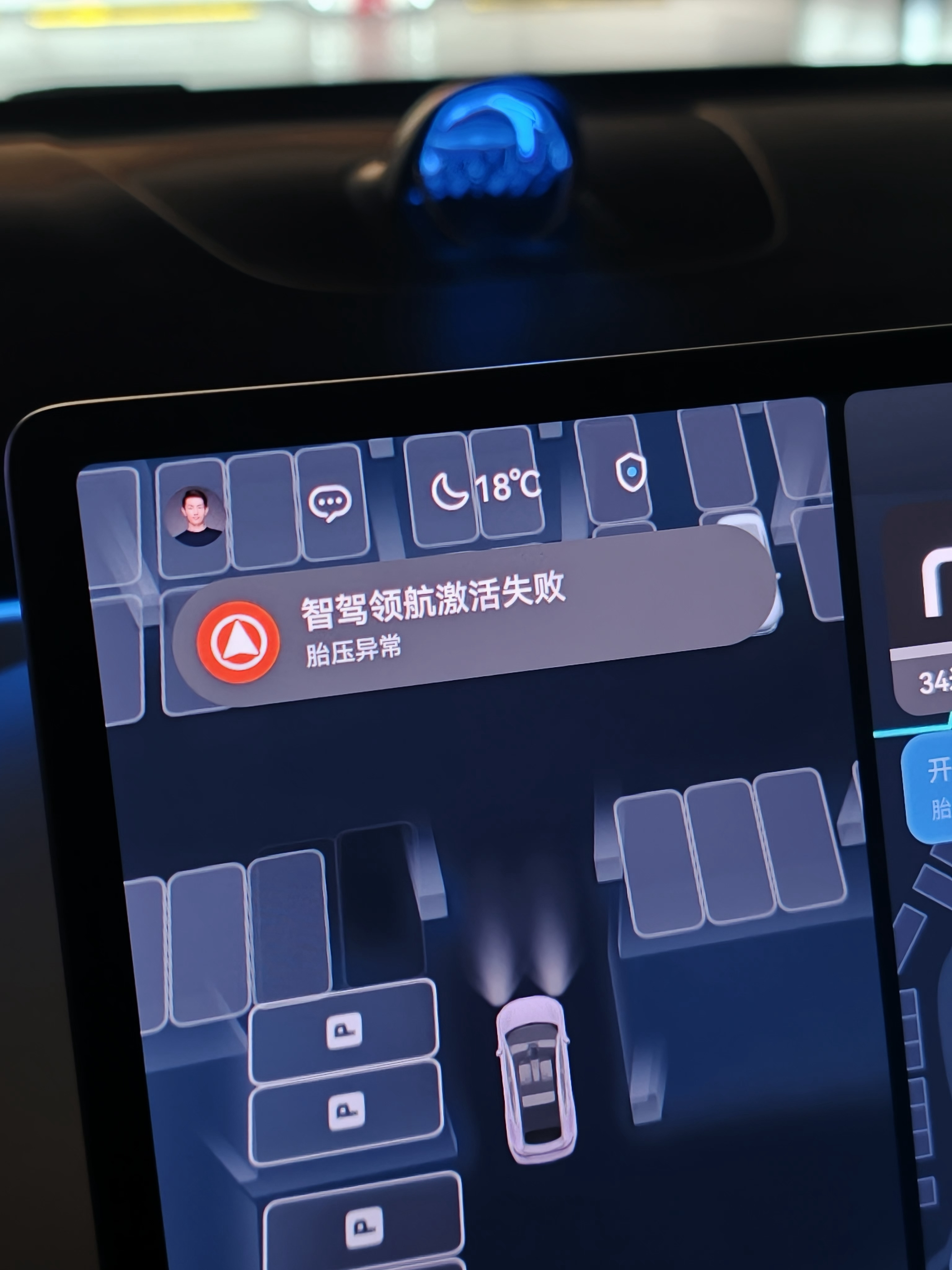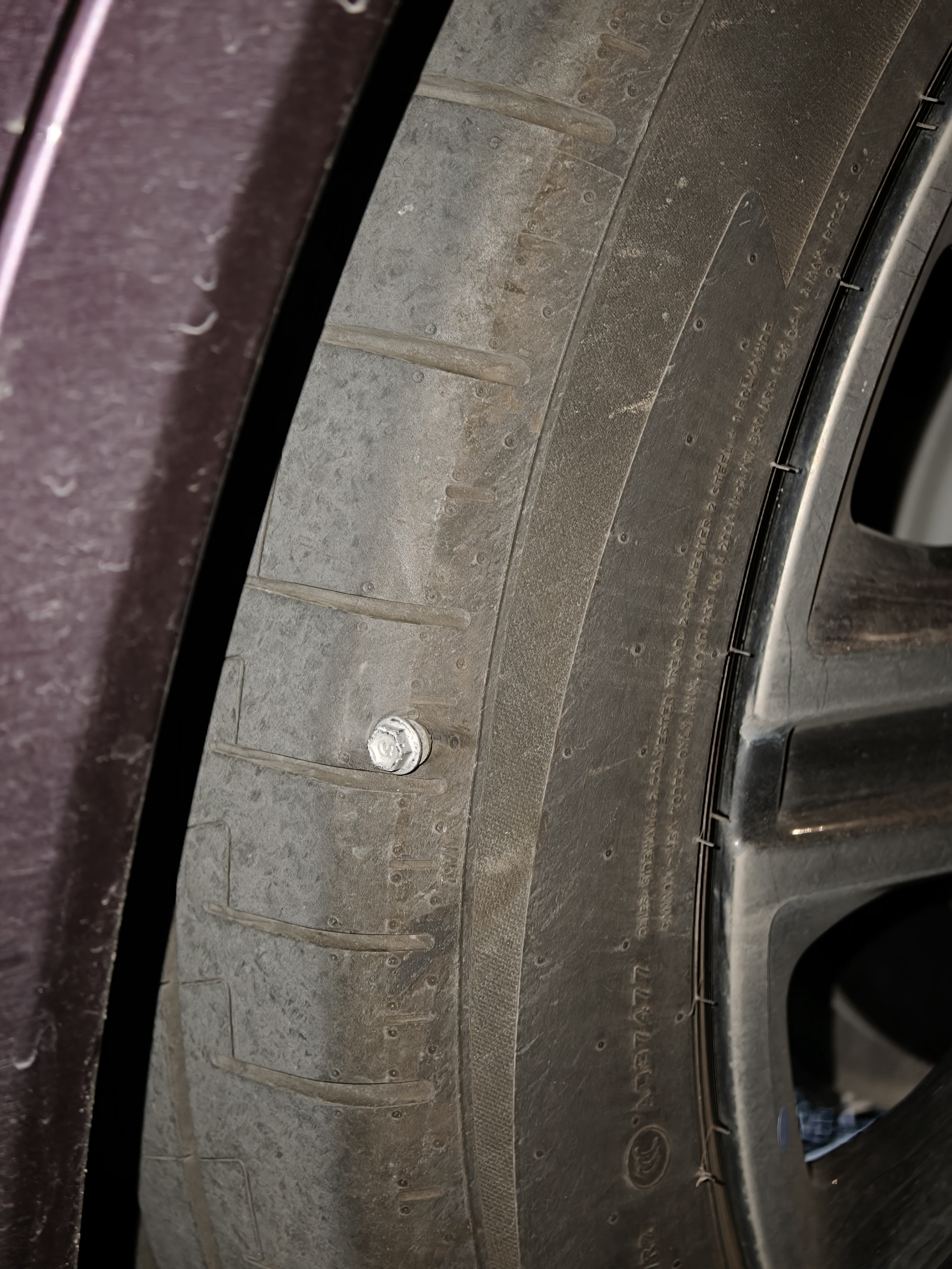 完了,智界 R7扎胎了,好大一个螺丝。然后胎压异常的话,智驾用不了,泊车也用不了。但是着急去吃饭,等回来再处理,希望别把气漏完了。