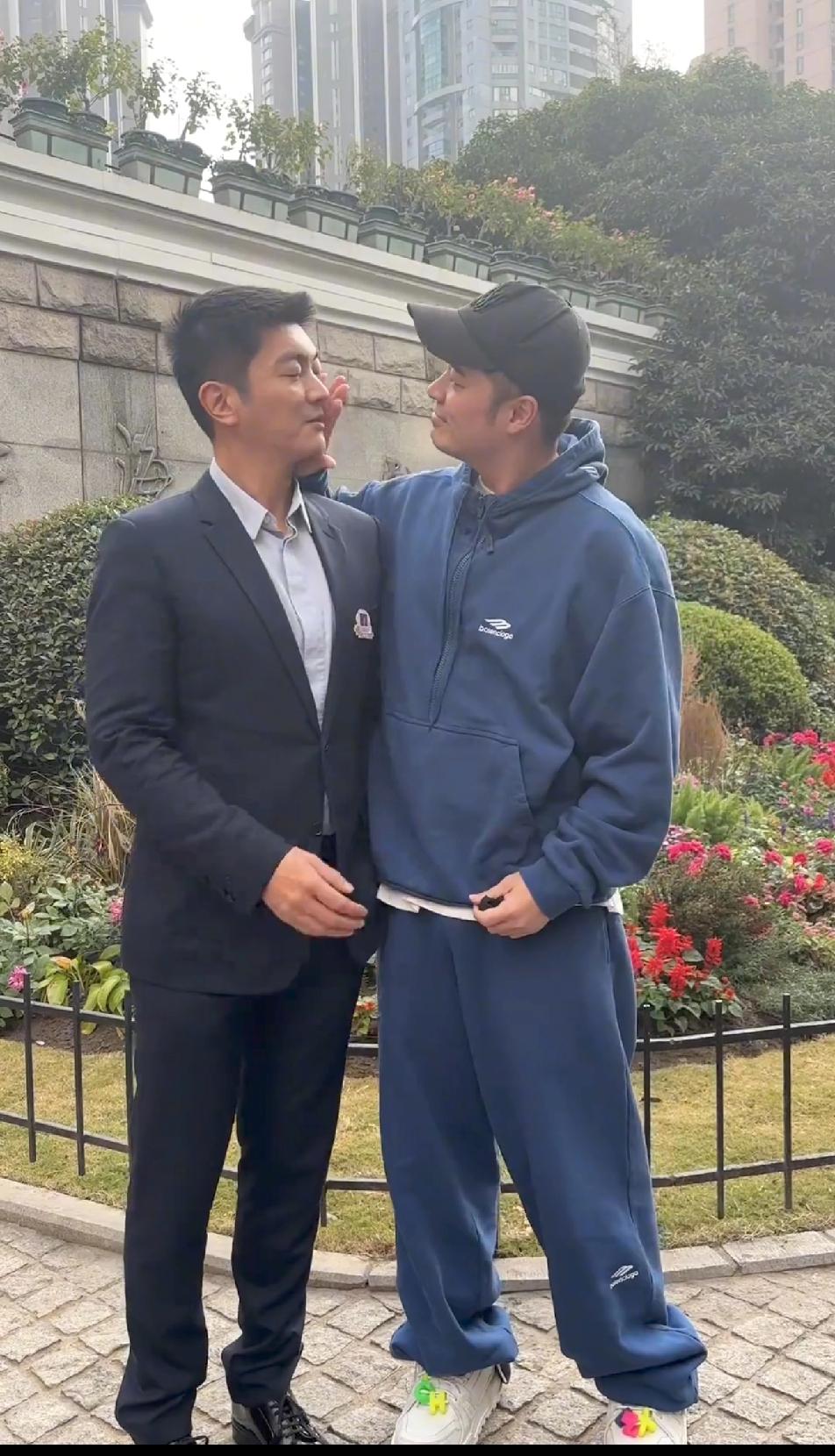 陈赫怎么回事?跟杜江在一起这气质都不对了,看陈赫一脸娇羞的挂在杜江身上的样子,真的让人忍俊不禁,杜江一脸正气,陈赫一脸妖媚,两个人画风截然不同,拍照的时候,陈赫又突然发癫,他深情的看着杜江,然后上手轻抚杜江的脸,杜江被他吓一跳,赶紧拿手把陈赫拨拉到一边去,肉眼可见的嫌弃……这俩人,一个老干部风,一个抽风~陈赫 杜江