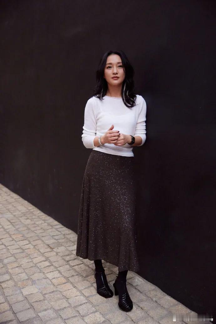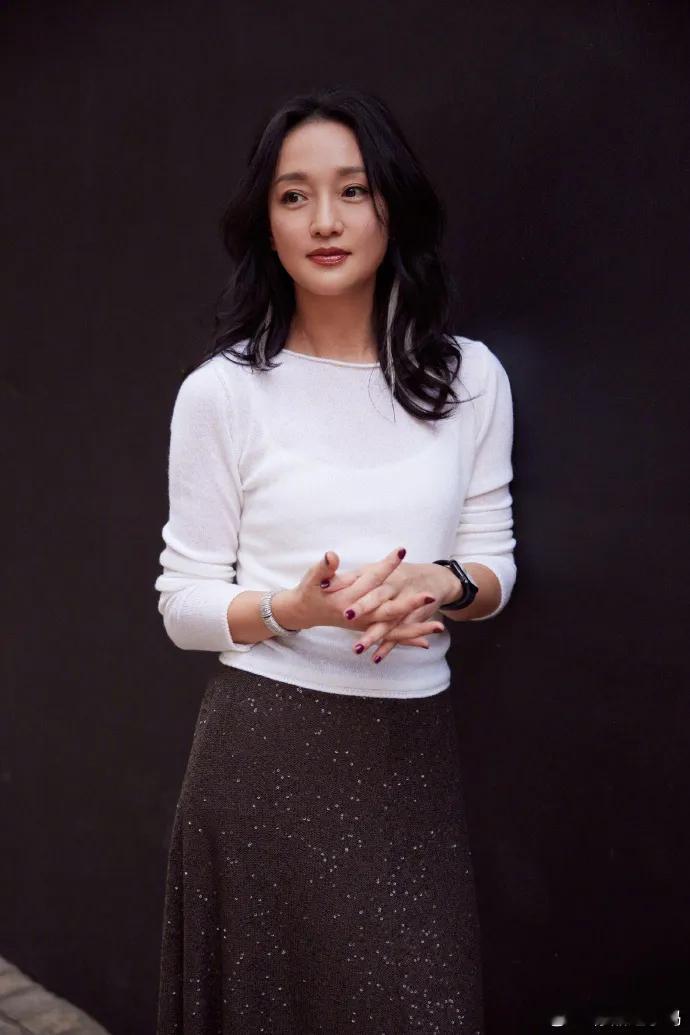周迅新烫了微卷发大变!穿白色针织衫+亮片半裙,高级又洋气!!!!!!!