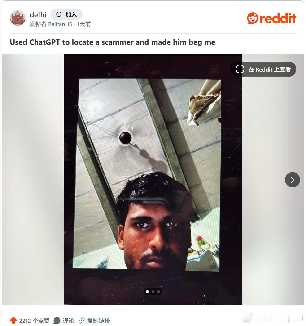 【ChatGPT成反诈利器!男子一招逼骗子正脸照和定位曝光】海外新鲜事 印度德里一名男子巧用ChatGPT设计假支付页面,成功反制诈骗者,不仅获取了对方精准定位和清晰照片,还把骗子吓得连连道歉、求饶。他将整个过程分享至网络,迅速引发热议。这名男子3日在论坛「Reddit」发文表示,他在Facebook收到一则冒充大学学长的消息,对方称一名中央后备警察部队的朋友即将调职,急于出售高档家电和家具。男子起疑并打电话求证,果然确认是诈骗,于是决定反制。当诈骗者换用另一个带军人头像的账号,传送二维码要求付款时,男子并未直接揭穿,而是假意配合,拖延时间称遇到技术问题。随后,他利用ChatGPT生成一个简易网页,能够收集用户GPS位置并启动前置摄像头拍照。男子将网页链接发送给诈骗者,声称上传二维码即可“加速交易”。对方毫不犹豫点击链接,网页立即回传诈骗者的精准定位和一张正脸照片。男子随后将这些资料反馈给对方,并讽刺道:“祝你在监狱里过得愉快。”骗子当场崩溃,连忙求饶,并承诺停止诈骗。贴文曝光后,网友纷纷点赞男子的机智创意,称他“把AI用在了正确的地方”。有人表示想学习这种方法,但也有人提醒,这类工具若不受约束,可能被不具资安知识的普通人滥用,诱导他人泄露敏感信息。图:印度一名男子机智使用Chat GPT成功反制诈骗分子,并取得对方定位及照片。 (合成图片,欧新社档案照、撷取自Reddit)