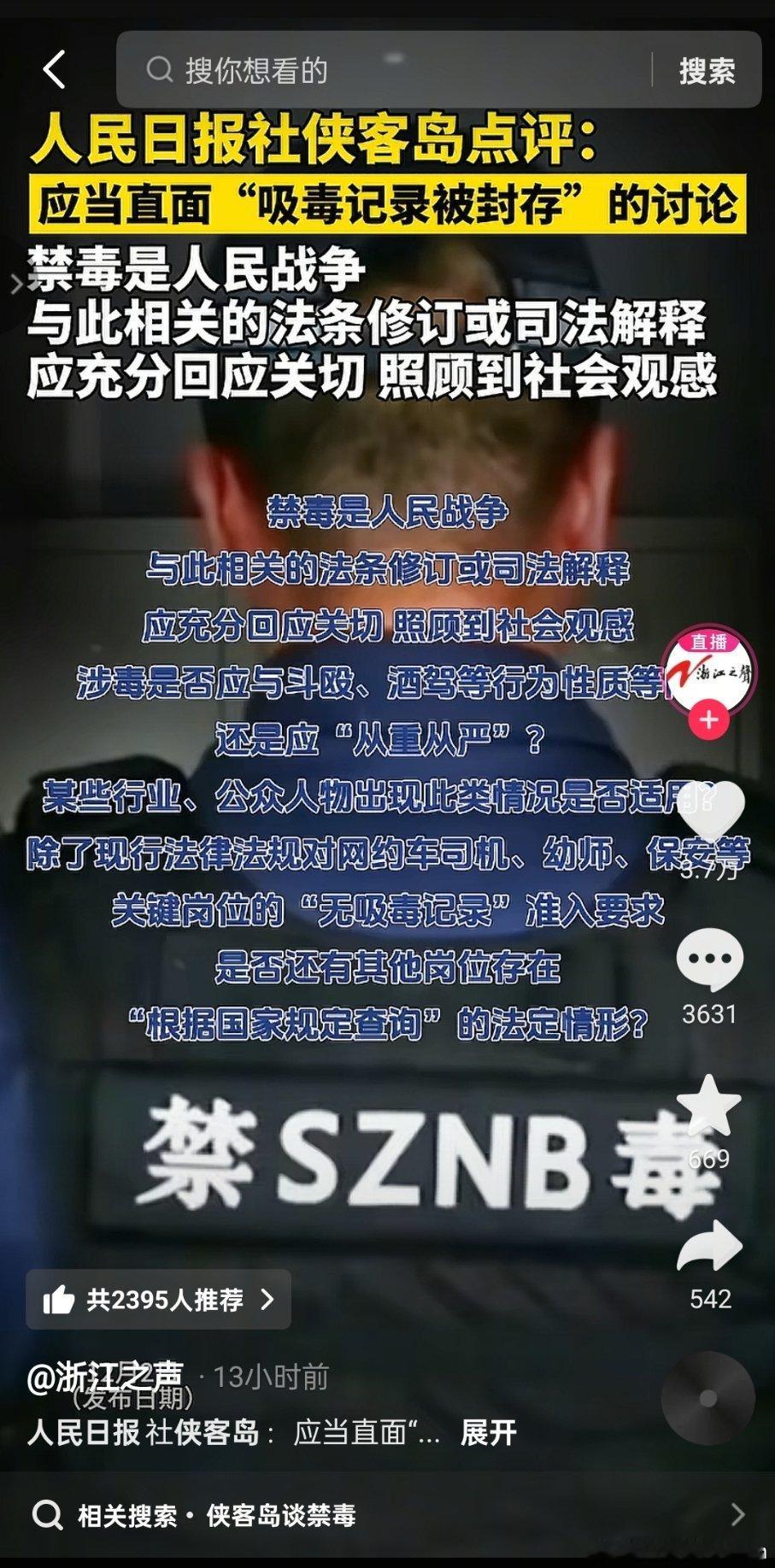 人民日报社,侠客岛点评:应当直面“吸毒记录被封存”的讨论,禁毒是人民战争,与此相关的法条修订或司法解释,应充分回应关切,照顾到社会观感。热点现场