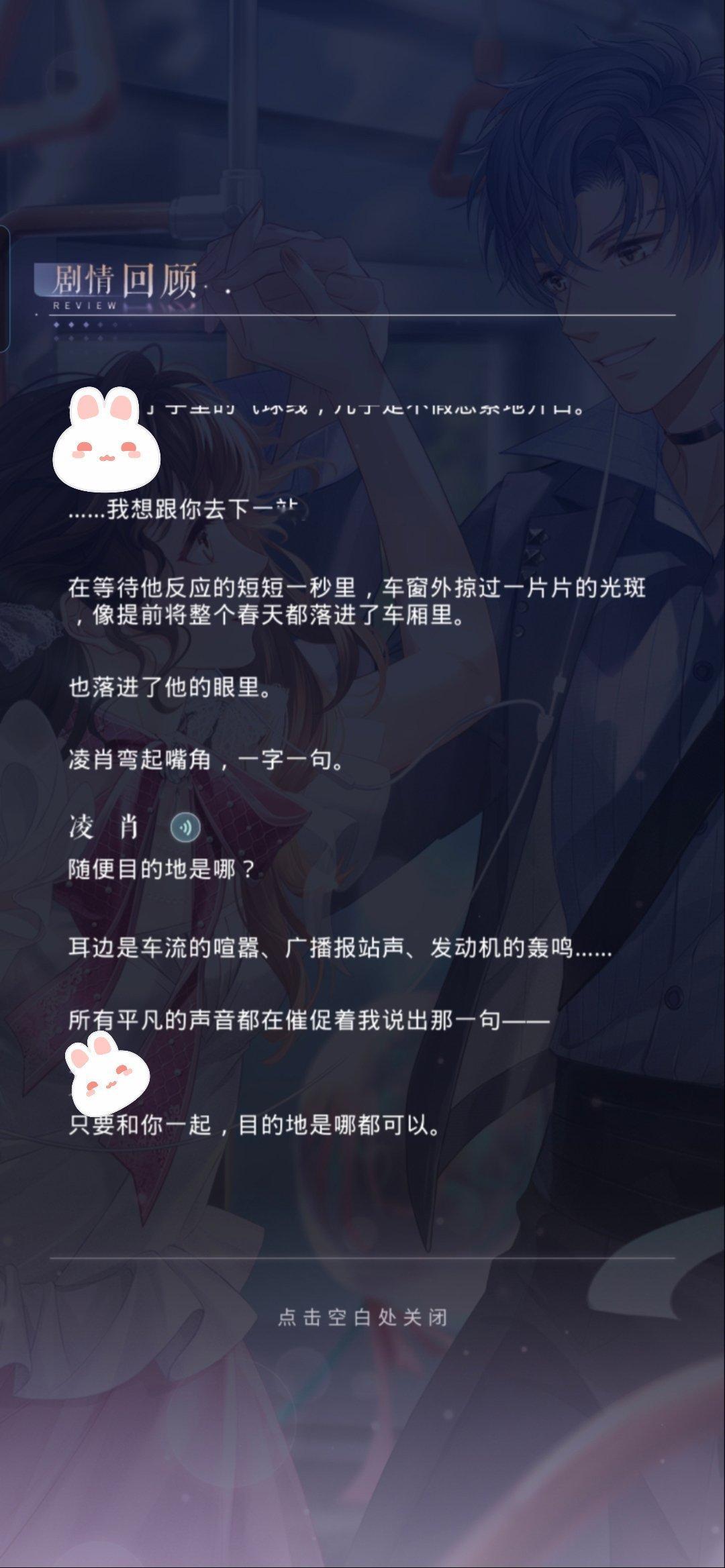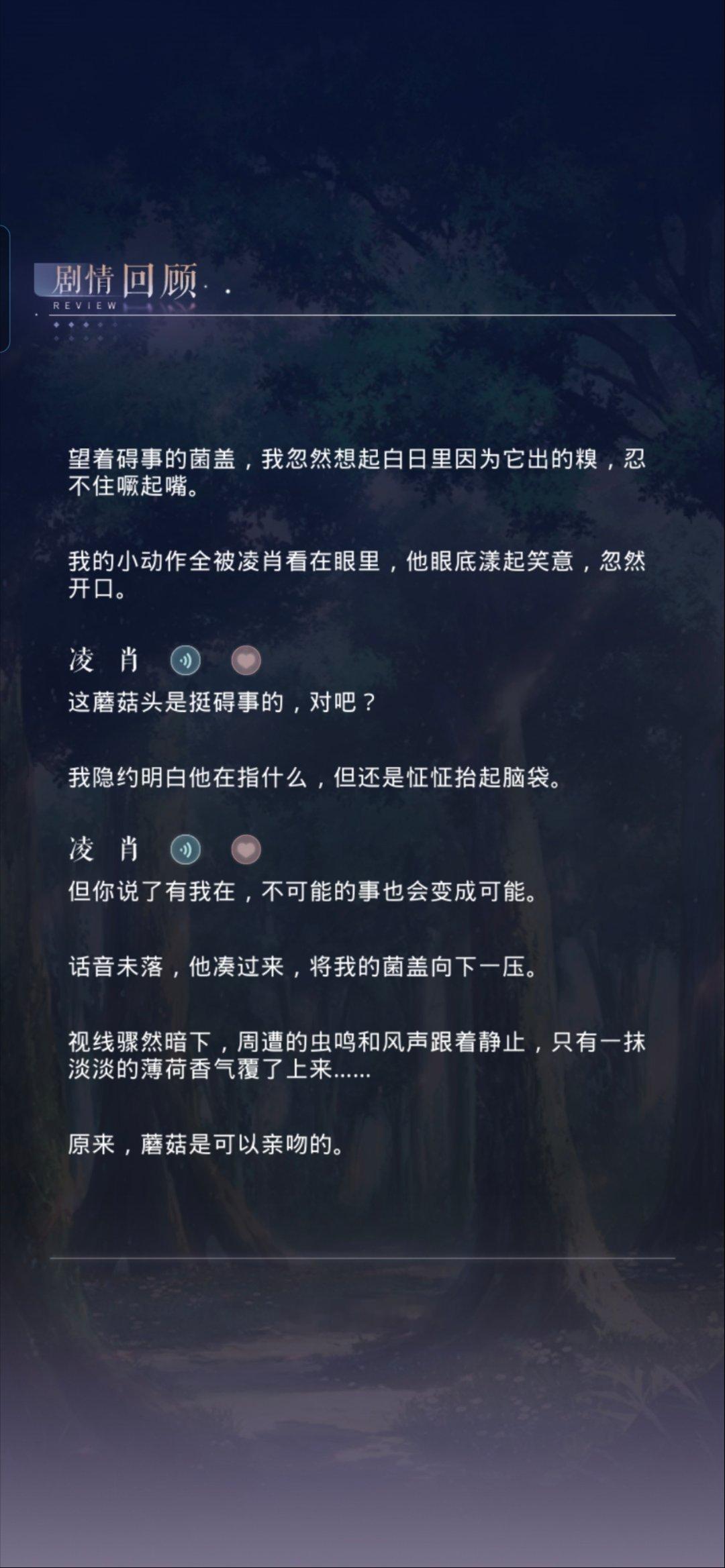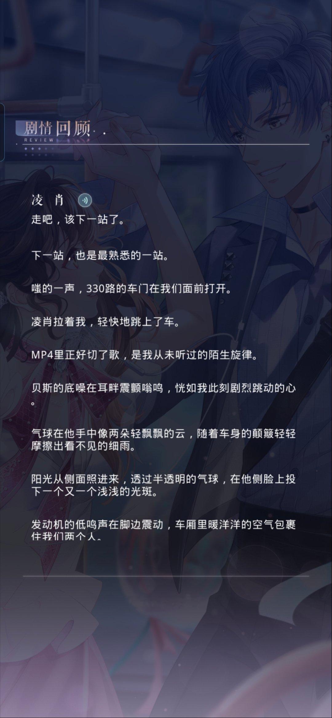 这个凌感菇真的太萌了,说的话看得人心软软的约会是callback了一下330还有一点点两年前的情人节约会,没想到一开篇就是打直球看得我一直在笑,不过最后结束得有一点仓促,戛然而止的感觉,最后给凌推们说一下小游戏商店的《恋与瞬息全宇宙8bit》和去见他98时光券可以解锁的《恋与瞬息全宇宙》几乎没有区别,如果章不够用的话可以放弃这个bgm,另外商店兑换的登录界面如果没有月卡的话也是不能用的,大家酌情考虑
