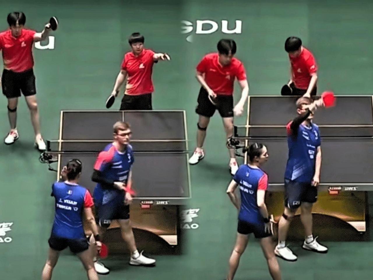 这两小只互动真的超有爱! 场边有闪光灯亮, 莎莎马上抬手指了指, 大头看都没看那边, 直接就跟着莎莎指的方向也指了过去, 这默契,绝了! 连对手大布也跟着帮忙, 朝观众席比划,示意关掉闪光灯。 别看大布场上打球挺“暴躁”, 场下人还真挺暖的。 更有意思的是赛前热身, 邱导模仿大布的发球动作陪莎莎练球, 大布在旁边看着觉得不太像, 居然主动走过去给邱导比划讲解起来。 这么真诚又大方的对手, 真的很少见, 球品人品都没得说!