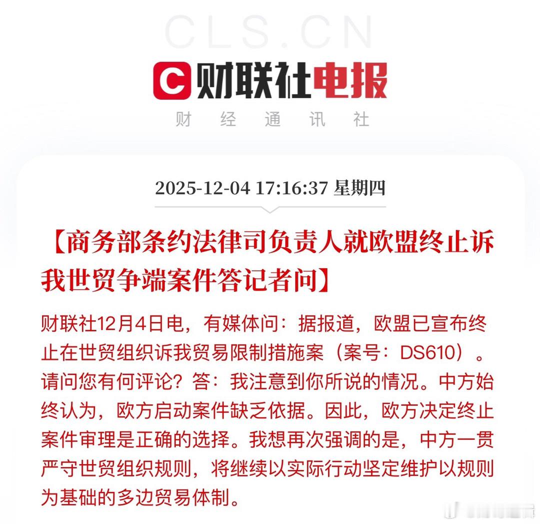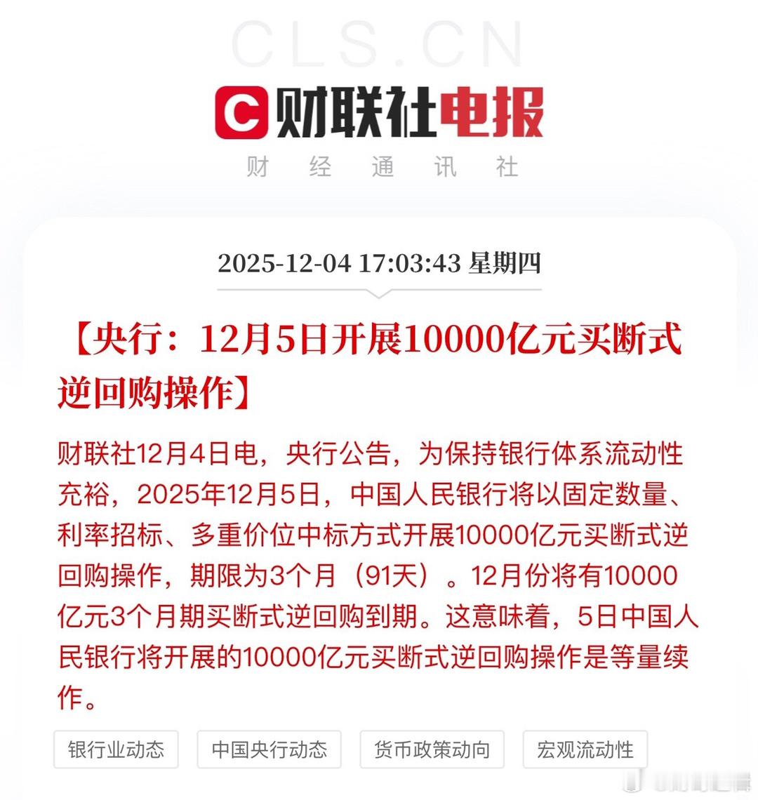 盘后两大利好,⒈央行12月5日开展1万亿元买断式逆回购。这是向市场投放净流动性。相当于变相降息了!⒉欧盟撤诉!欧盟终止诉讼我国世贸争端案件。咱虽然不知道欧盟幡然醒悟诚意几何?但小学生都看得明明白白的,欧盟2027年要彻底切断俄气,改为进口卡塔尔和美国的天然气。但是卡塔尔和美国又是从俄罗斯手上买的,换了个名头罢了,关键价格翻番。那欧猪岂不是成了大冤种?这就非常有意思了…如果从东大这边买,虽然东大也是转手的俄气,但是算上船员费转口贸易的税费和利润,可能价格也只要美气的7成左右,这个账老欧应该能算明白!Ai时代要是没有能源,那么老欧家会被时代抛弃…央行即将开展10000亿元买断式逆回购