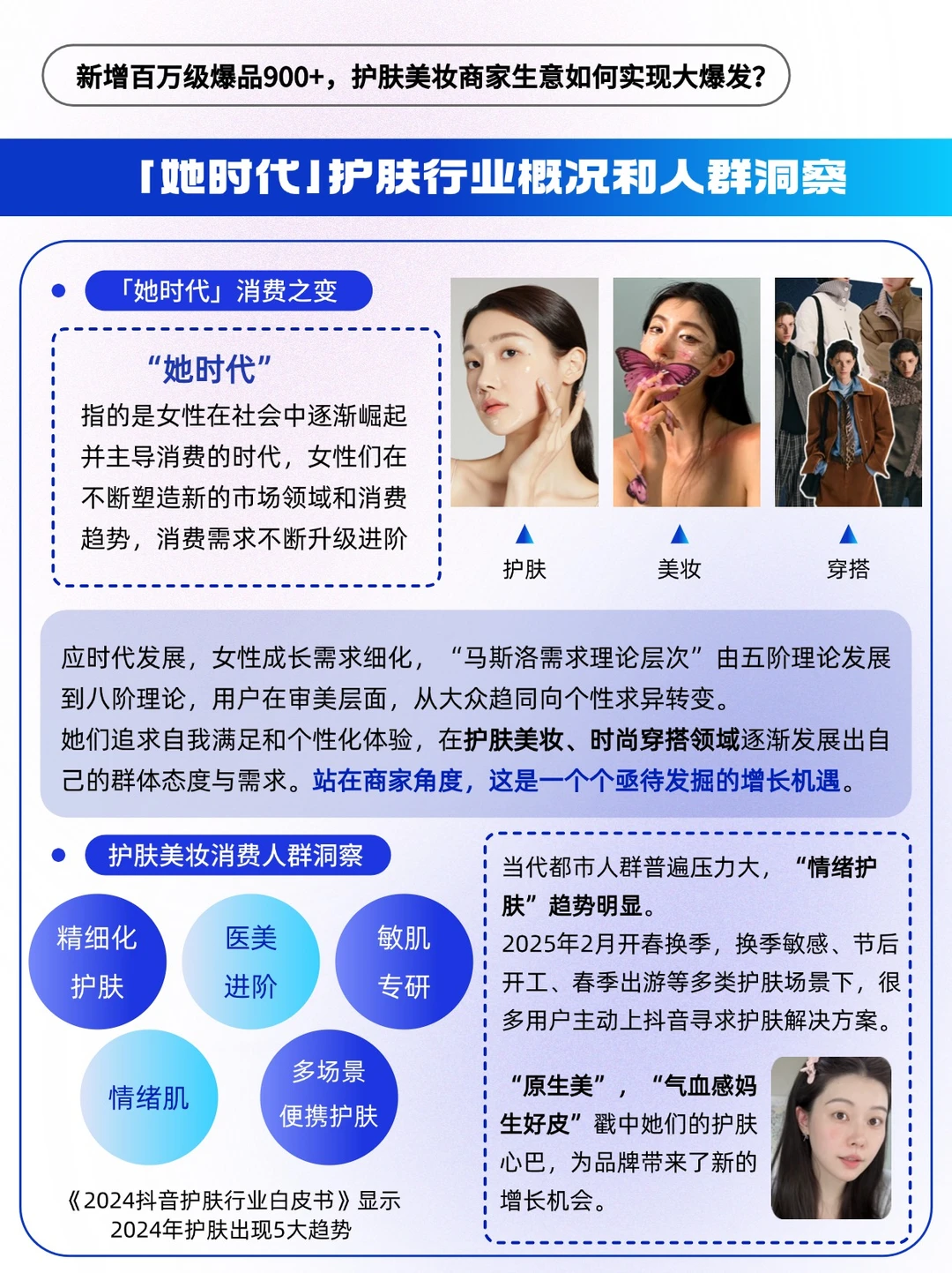 「她时代」来临,女性们在不断塑造新的市场领域和消费趋势。她们追求自我满足和个性化体验,在护肤美妆、时尚穿搭领域逐渐发展出自己的群体态度与需求,站在商家角度而言,是一个个亟待发掘的增长机遇💰