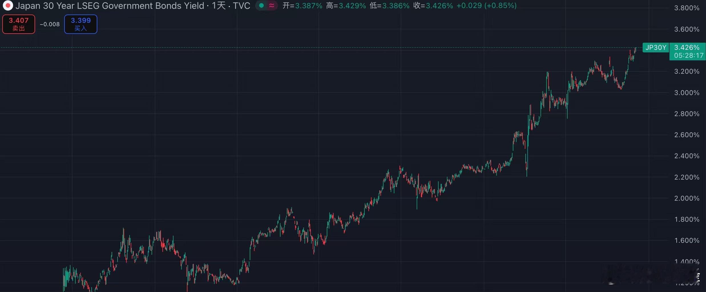 当前市场极其的矛盾,30年期日本国债利率已经飙升到3.42%,历史新高,5年前的今天,这个数据📊仅仅不到0.3%,足足飙升了10倍!一边是市场恐慌的日本🇯🇵加息,一边是日本敲定的1350亿美金的经济刺激方案。一边印钞刺激经济,一边还要加息,这世界怎么了?🧐日本现在成为了全球经济最不稳定的因素!