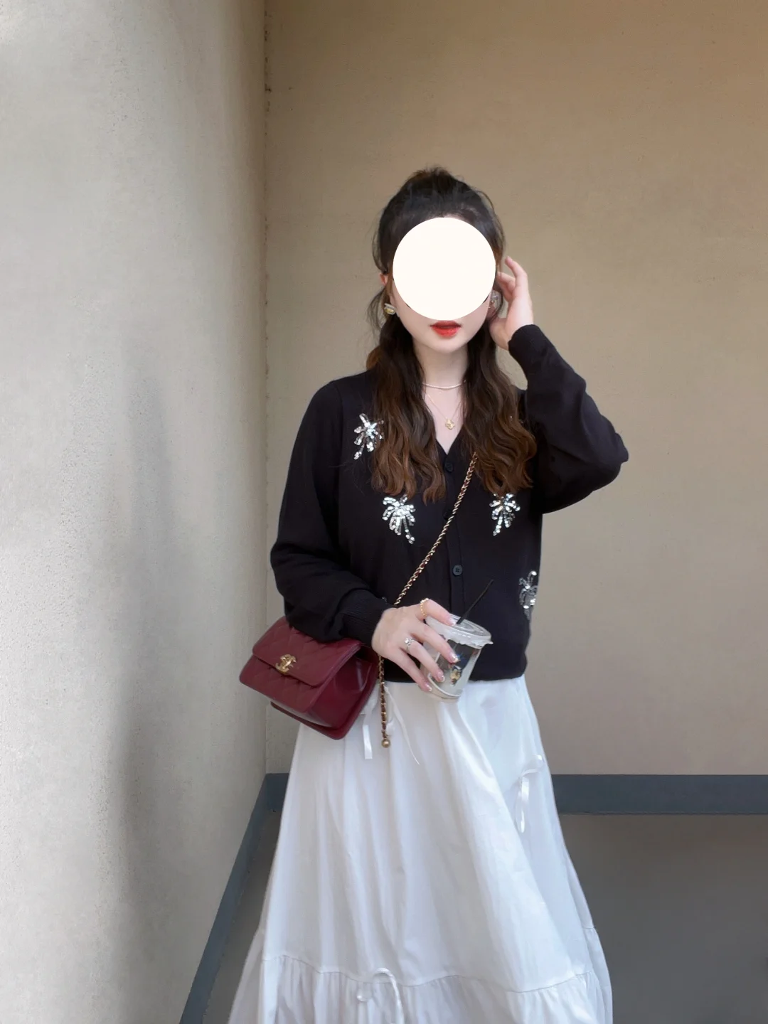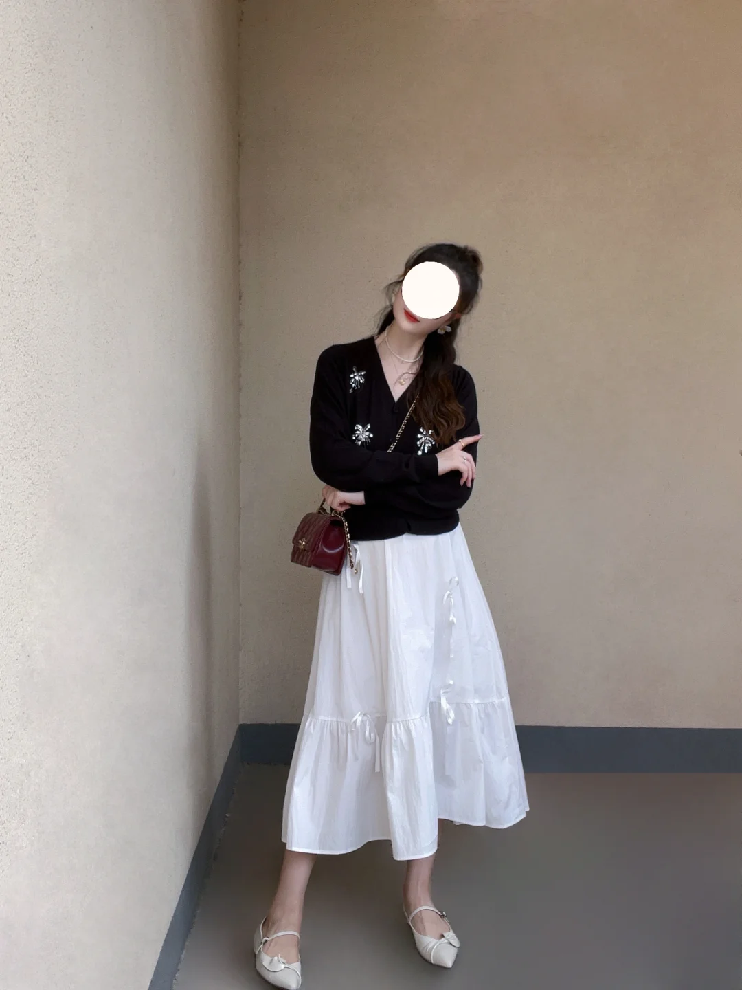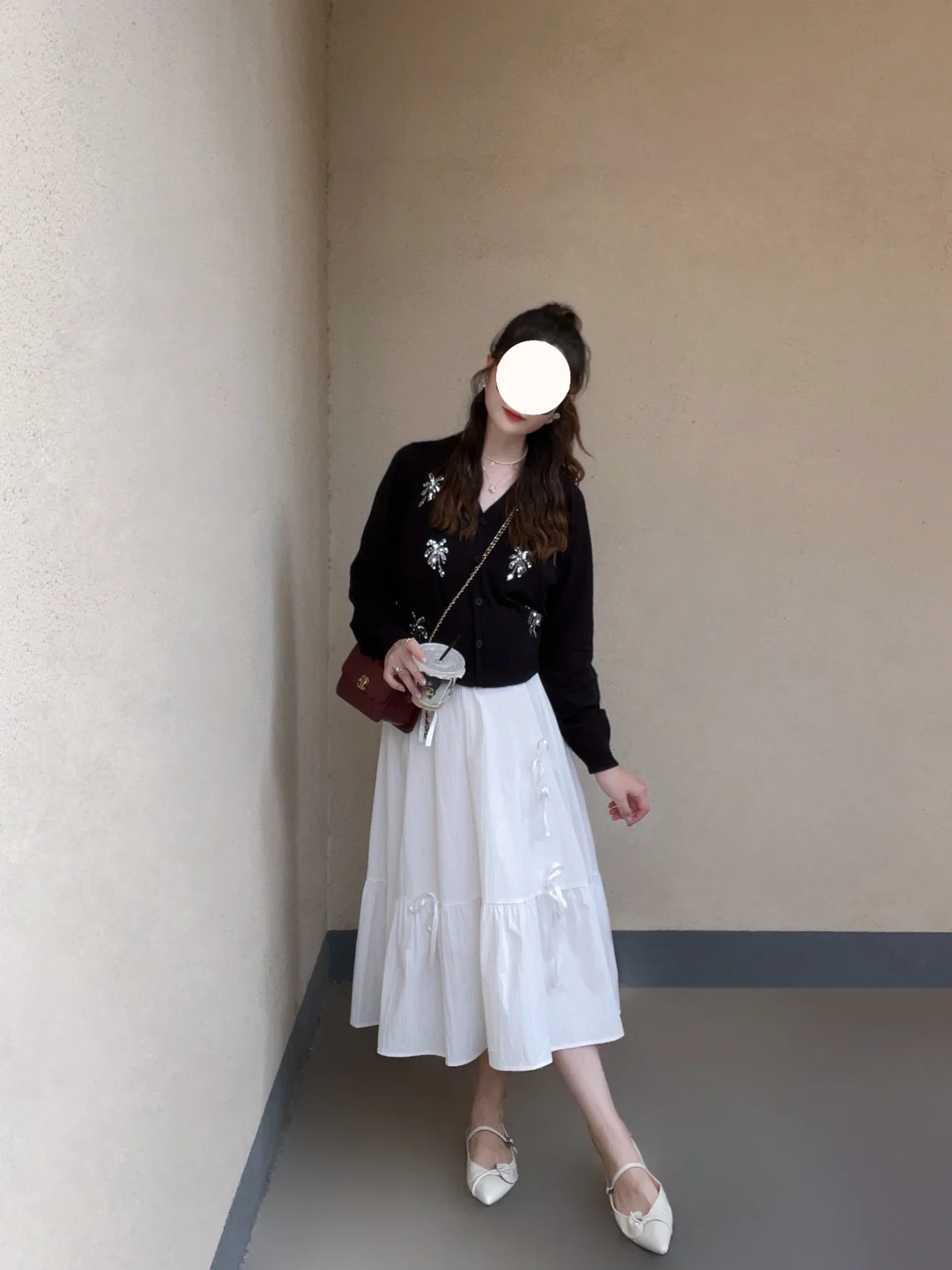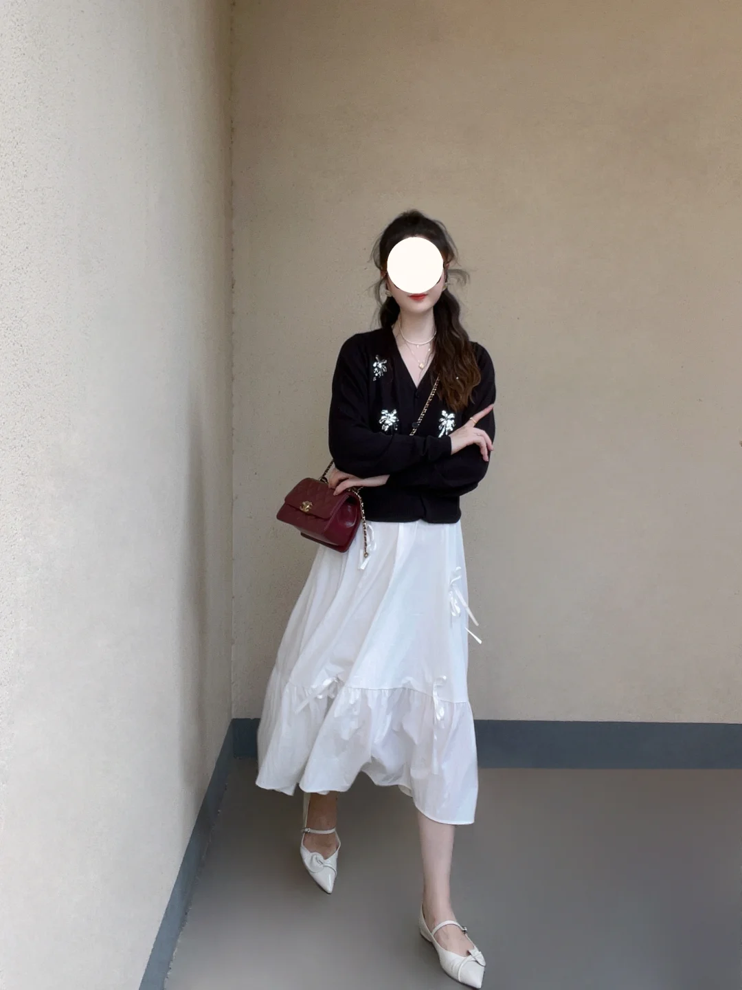 多巴胺秋日穿搭💙蓝色毛衣小开衫➕半身裙