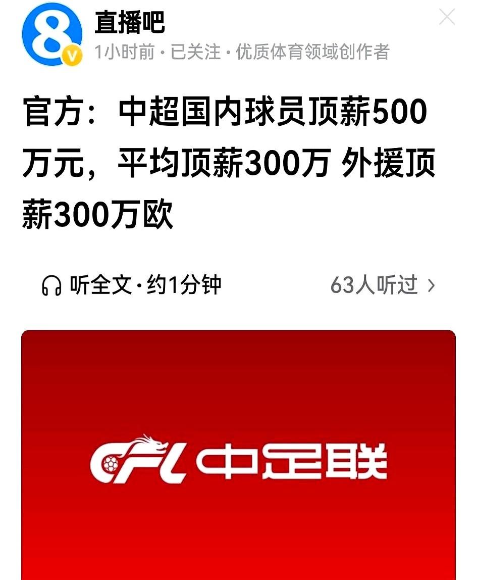 高,实在是高!中足联新限薪令一出,评论区竟无人叫好。 新限薪令大幅抬高国内球员、外援顶薪,可国足已是亚洲三四流水平,中超球队亚冠表现糟糕,这样的薪酬提升难以服众。 我认为球员薪资应与成绩强绑定,国足和中超球队得用赛场表现证明自己配得上高薪,不然质疑声只会更响。也盼足球从业者知耻后勇,靠实力让中国足球真正崛起,别再让球迷寒心。