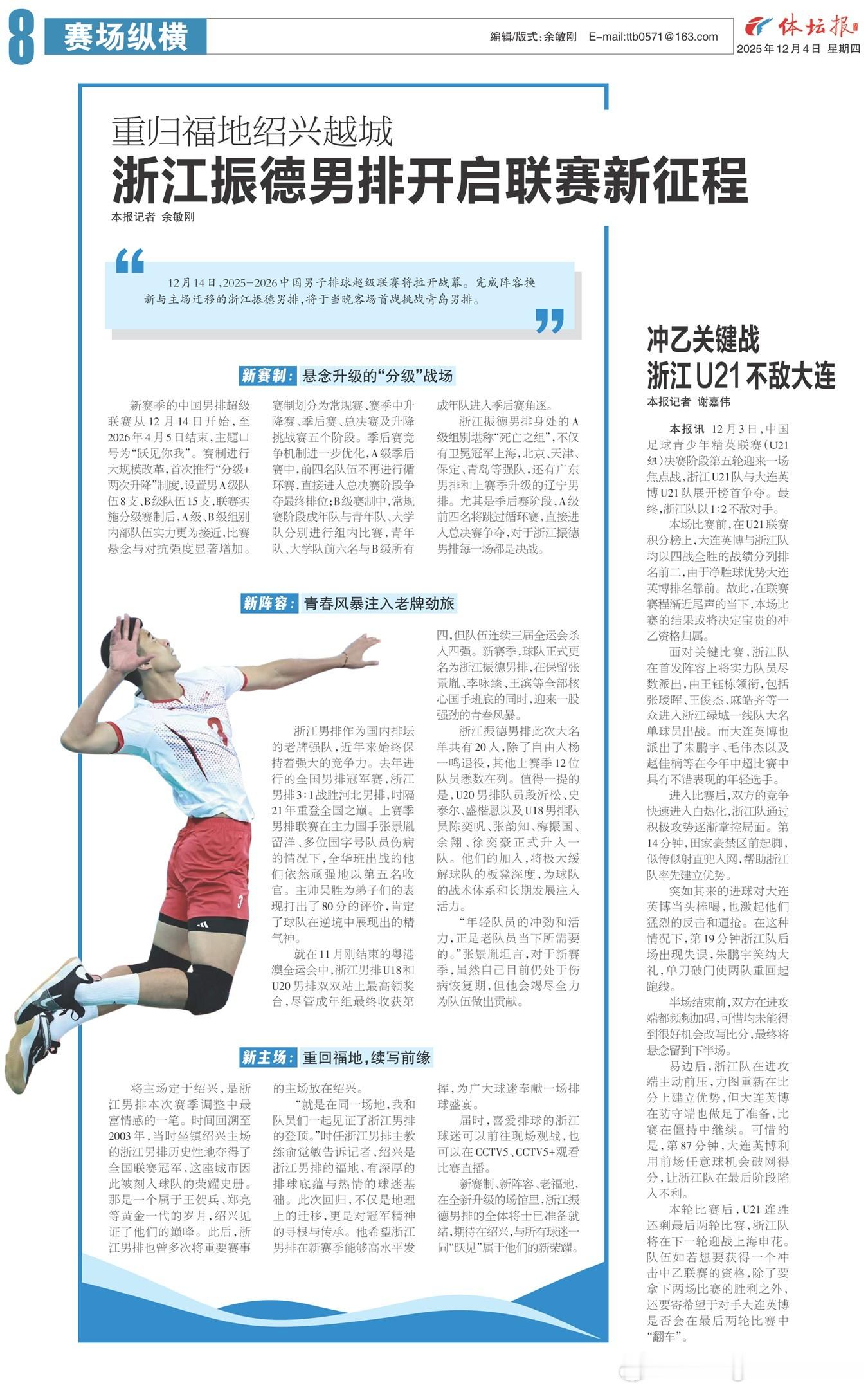 浙江男排新赛季排超名单公布,官媒报道。大名单中张景胤养伤不参加,u20史泰尔以及余翔等u18部分队员升至一队。中国男排中国男排超级联赛