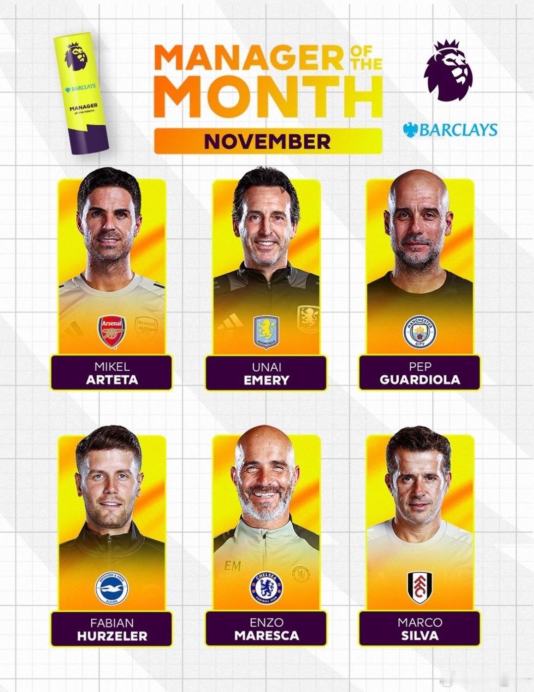赖斯和阿尔特塔分别入围英超十一月最佳。