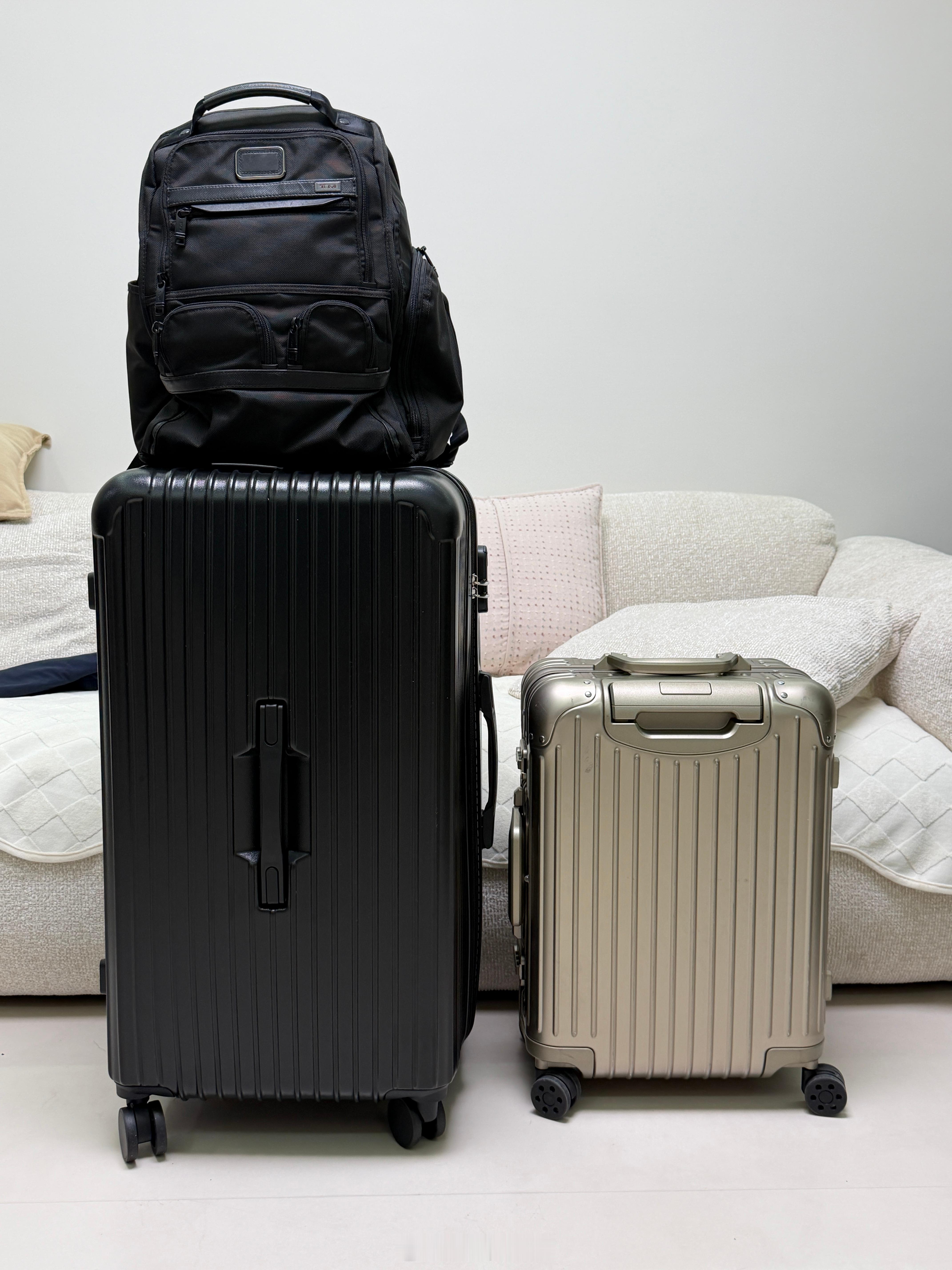 准备出一趟十几天的长差,到15号最少要跑六七个城市,这个RIMOWA的小行李箱真是装不了几件衣服,之前的大件行李箱跟了我十几年了也在今年报废了。临时在美团斥巨资买了个大行李箱,两双靴子,羽绒,各种换洗衣物都塞进去了,舒服!但是才花了多少钱你绝对不敢信