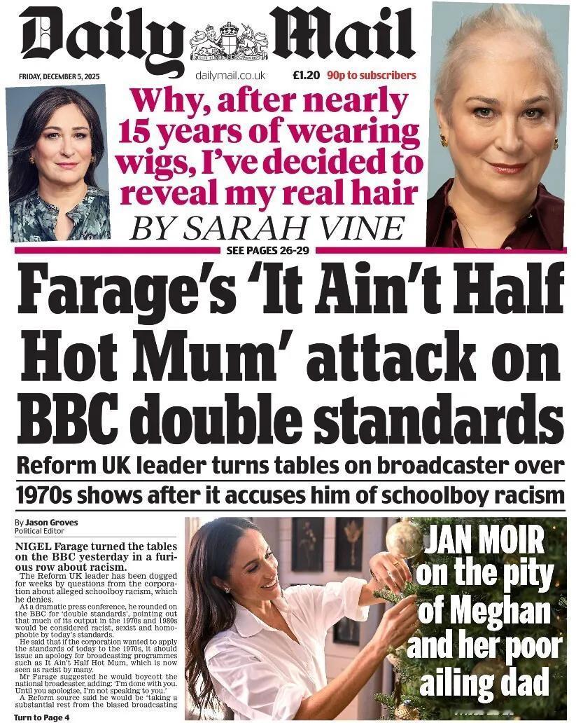 《每日邮报》报道,同样也在宣传英国改革党领导人奈杰尔·法拉奇在一次新闻发布会上批评了BBC(英国广播公司),原因是其反复报道这位改革党领导人在青少年时期据称发表的种族主义言论。 关于奈杰尔·法拉奇(Nigel Farage)在青少年时期据称发表的种族主义言论,目前主要基于一些媒体报道和同窗的指证,他本人则坚决否认。 根据多家媒体报道,多位曾在达利奇公学(Dulwich College)与法拉奇同期的同学指控,他在学生时代曾发表过种族主义和反犹言论。 这些指控主要来源于《卫报》等媒体的报道,但法拉奇的发言人否认了所有说法,称其“明显缺乏依据”,并指责报道是针对改革党形象的抹黑。 法拉奇在公开采访中多次否认这些指控。他明确表示“从未以伤害性或侮辱性的方式针对任何人”,并强调这些事件发生在49年前,记忆可能模糊。