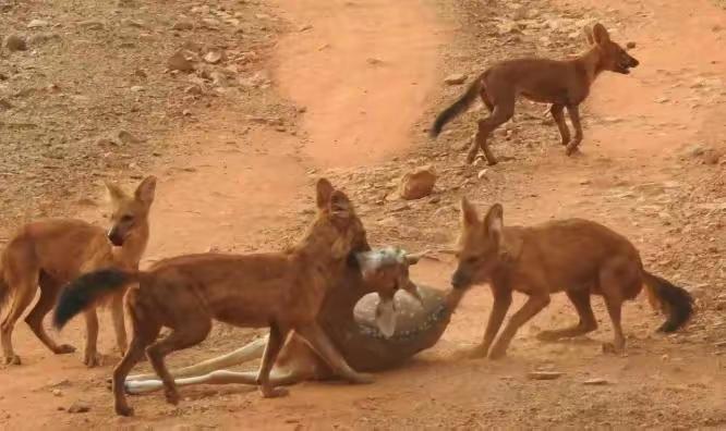 重大消息,青海省德令哈首次发现世界濒危物种豺的身影,大家都常常说豺狼,我们只见过狼却很少人见过豺,因为是濒危物种现在全世界只有1000多只,豺的体长1米左右,体重20多公斤,身高50厘米左右,群居动物喜欢水,是猎杀野猪的高手,体重200公斤的野猪不在话下,分分钟的就被豺拿下,可见其凶猛程度,我们说的豺狼虎豹个个都是凶猛异常,豺能排在首位。