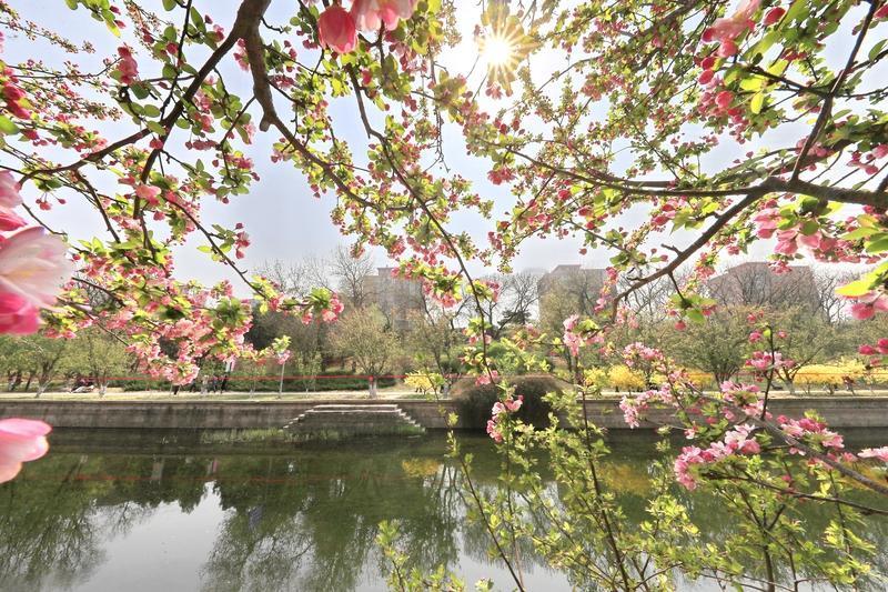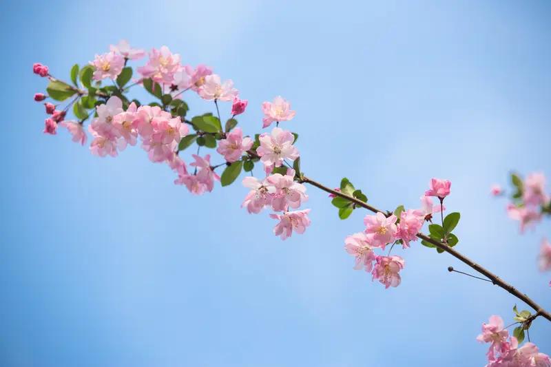 相册里最满意的照片,是那次拍摄的海棠花开。郫都区各地垂丝海棠盛开之际,我前往了市民体育公园。一走进公园,仿佛一头撞进了梦幻般的粉色花园。垂丝上托着娇艳的红花,微风轻轻拂过,花瓣纷纷飘落,宛如粉白的雨丝,空气中弥漫着清幽的香气。人们有的翩翩起舞,有的忙着拍照,孩子们在花下嬉笑玩耍。 还有郫筒街道沱江河绿道,粉白的海棠为绿道增添了浪漫的色彩。与樱花不同,它花叶同开,花瓣的配色美到极致,随手一拍就是氛围感十足的大片。每次翻看这些照片,我都能忆起那春日的温柔与美好。