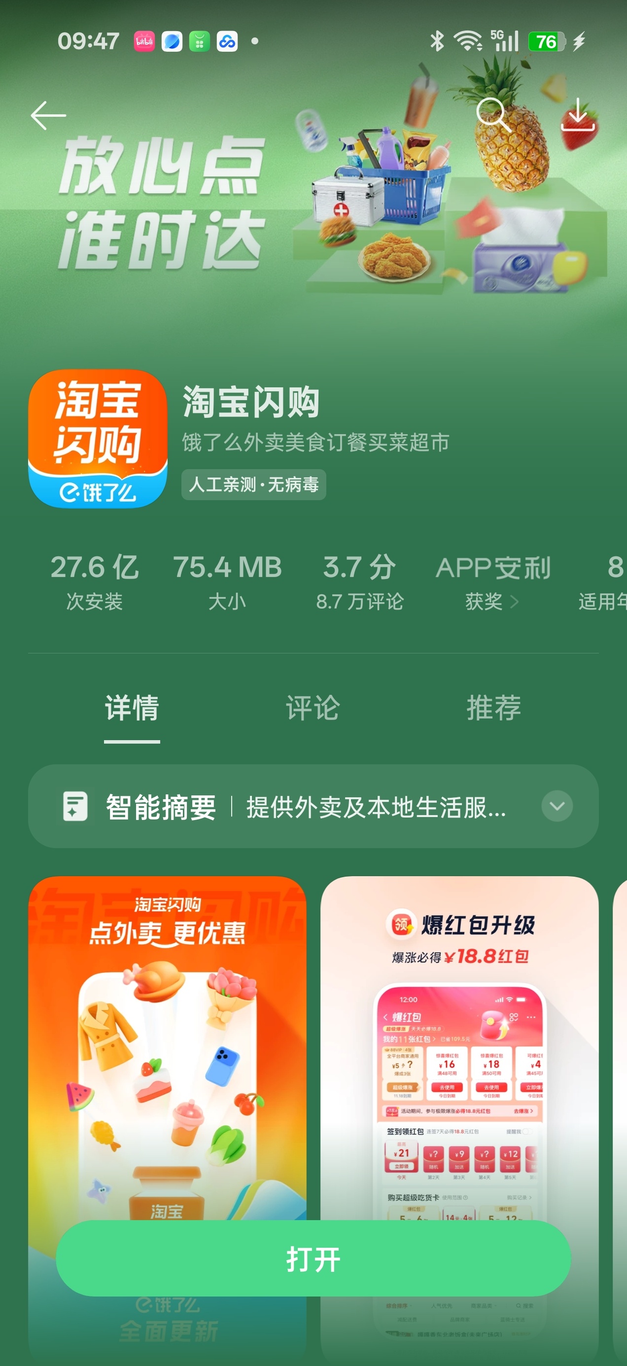 饿了么APP已更新为淘宝闪购淘宝这波调整和战略打法还是很正确,很迅猛的,之前“饿了么”总给人不瘟不火的感觉,很多人甚至都不知道这是阿里系的,这下调整以后就清晰多了。
