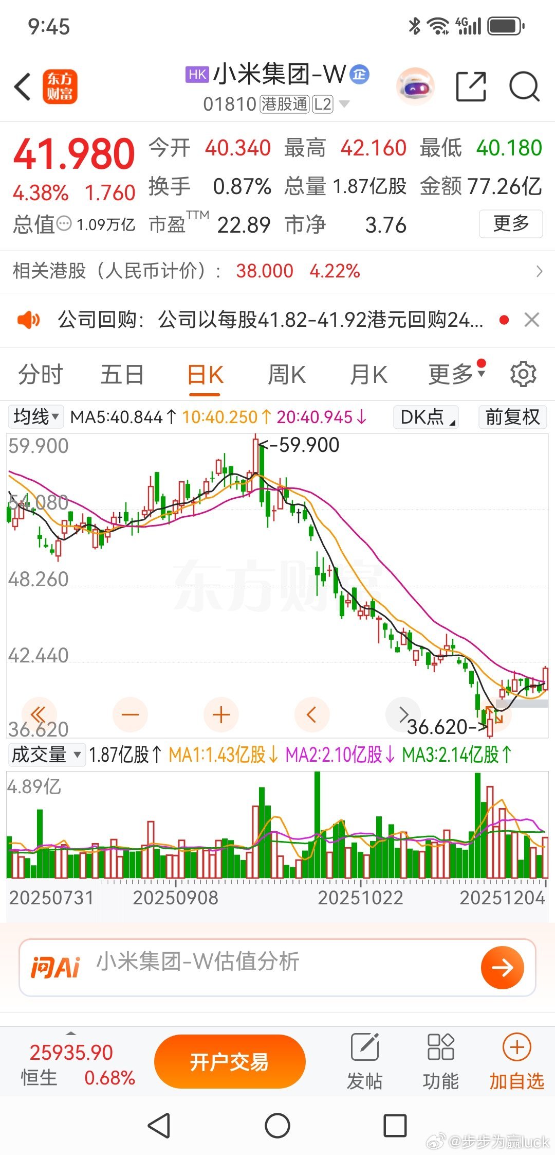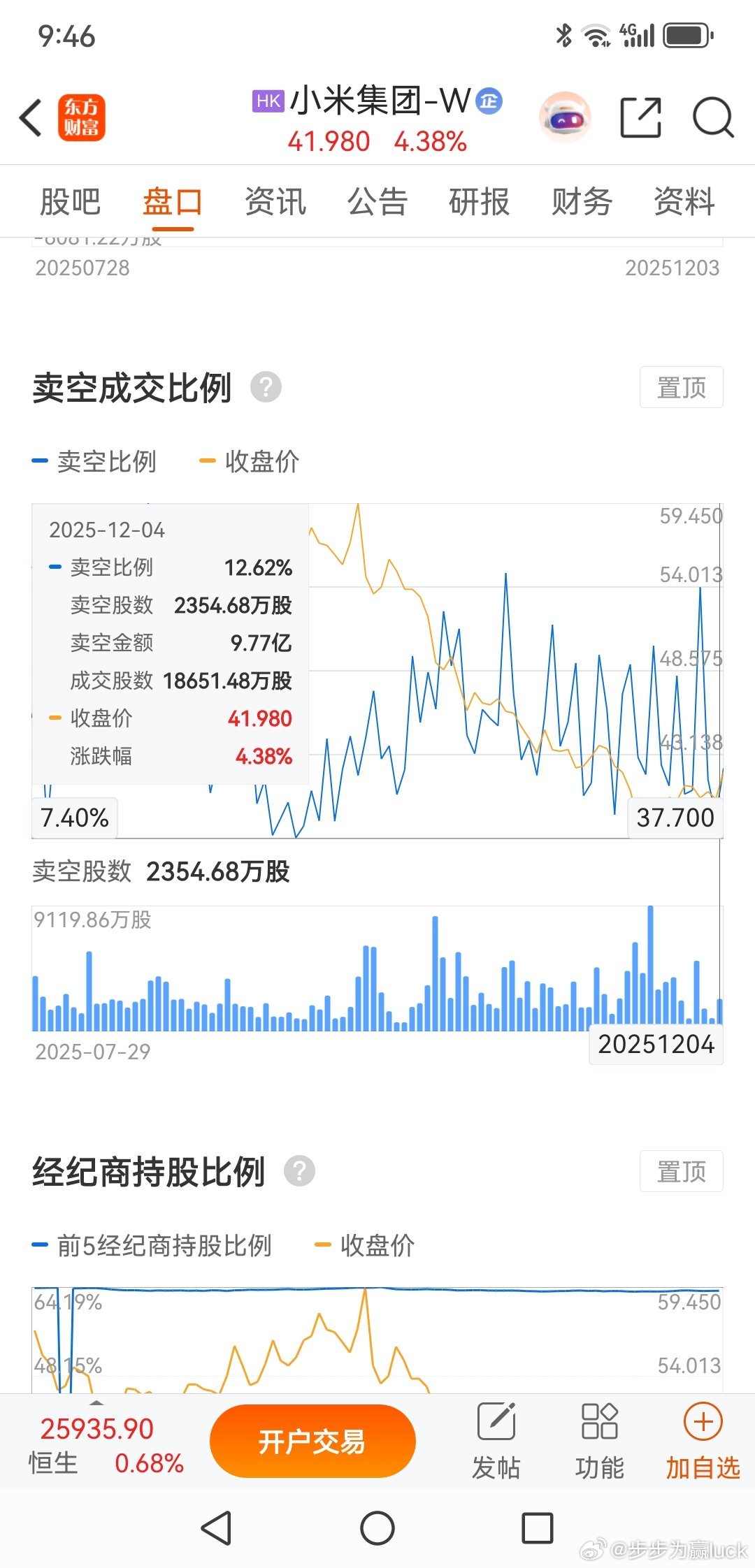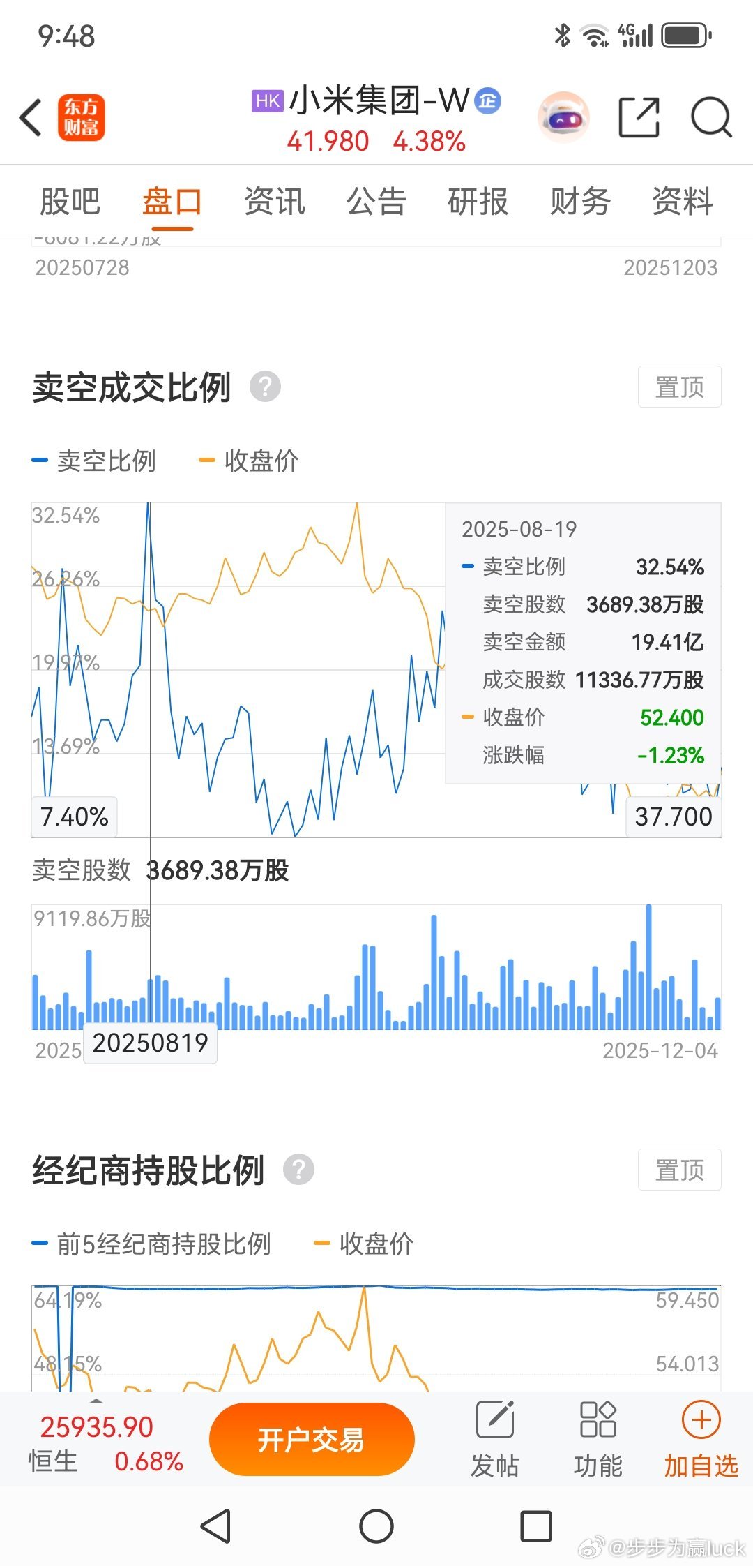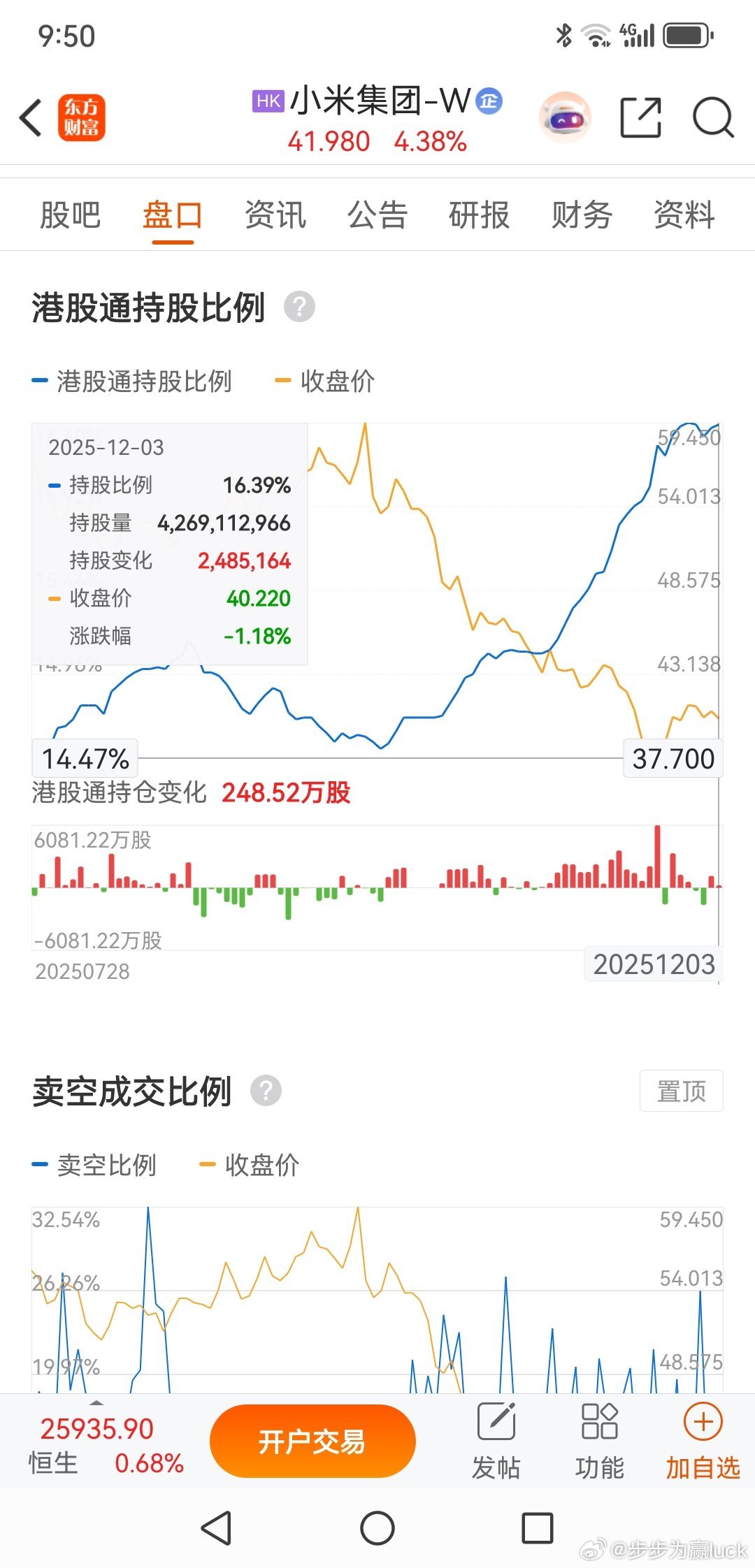 小米真的很刚,算上雷军的个人回购,在最近两周累计9次回购,差不多25亿。港股通持仓比例上涨到16.49%,做空比例下降到12.62%。维护股价的决心坚如磐石,不像A股市场的回购,更多是象征意义。相信小米欢迎加入我们的免费交流群股票财经
