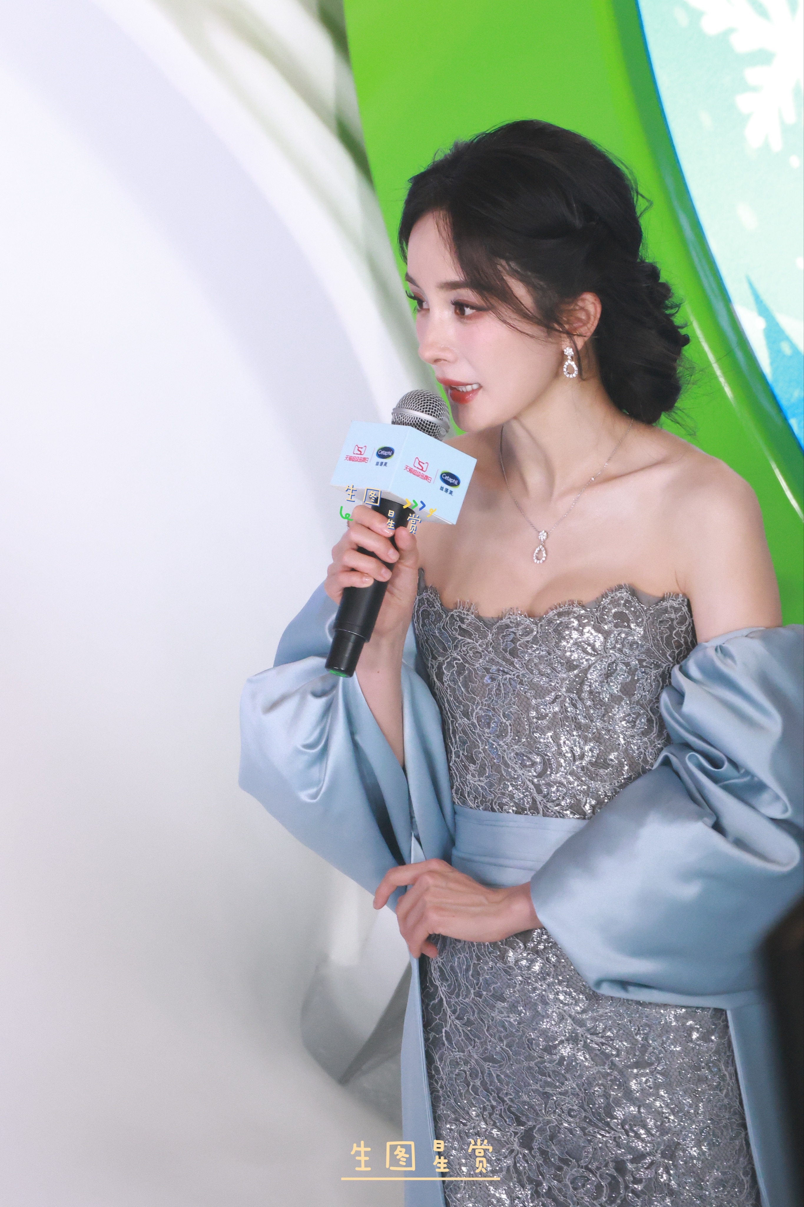 杨幂丝塔芙线下活动冰雪女王幂请轻点美❄️杨幂蓝色镂空裙杨幂