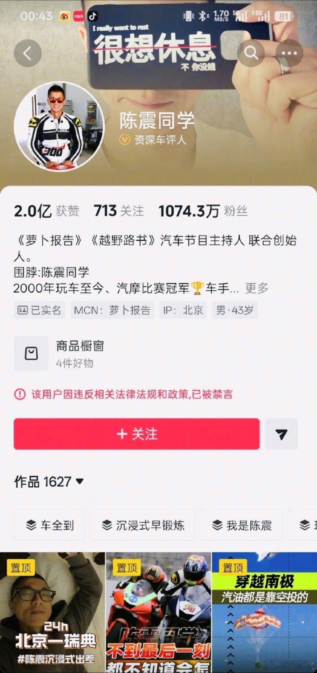 陈震多平台被禁言一觉醒来发现变天了啊!陈震居然被禁言了,还是多平台同步禁言,那说明多半是网信办下达的指令!是触犯了什么底线吗?这要禁言多少天哦!😯