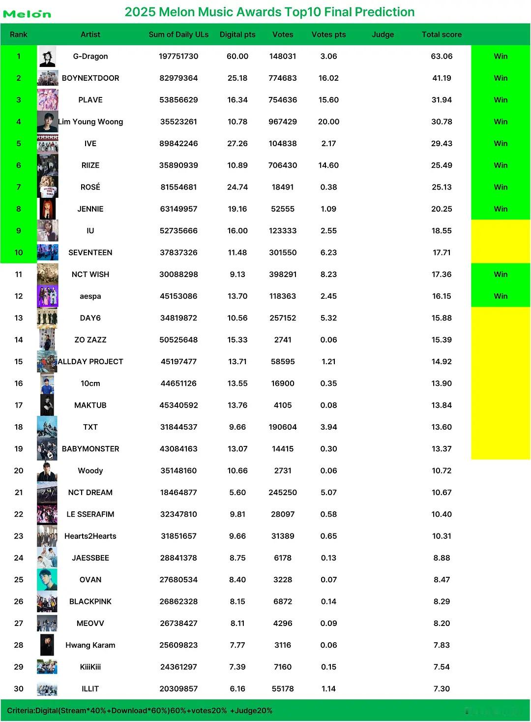MMA投票结束top10本赏获奖:朴彩英、林英雄、Jennie、aespa、boynextdoor、权志龙、IVE、nctwish、PLAVE、RIIZE