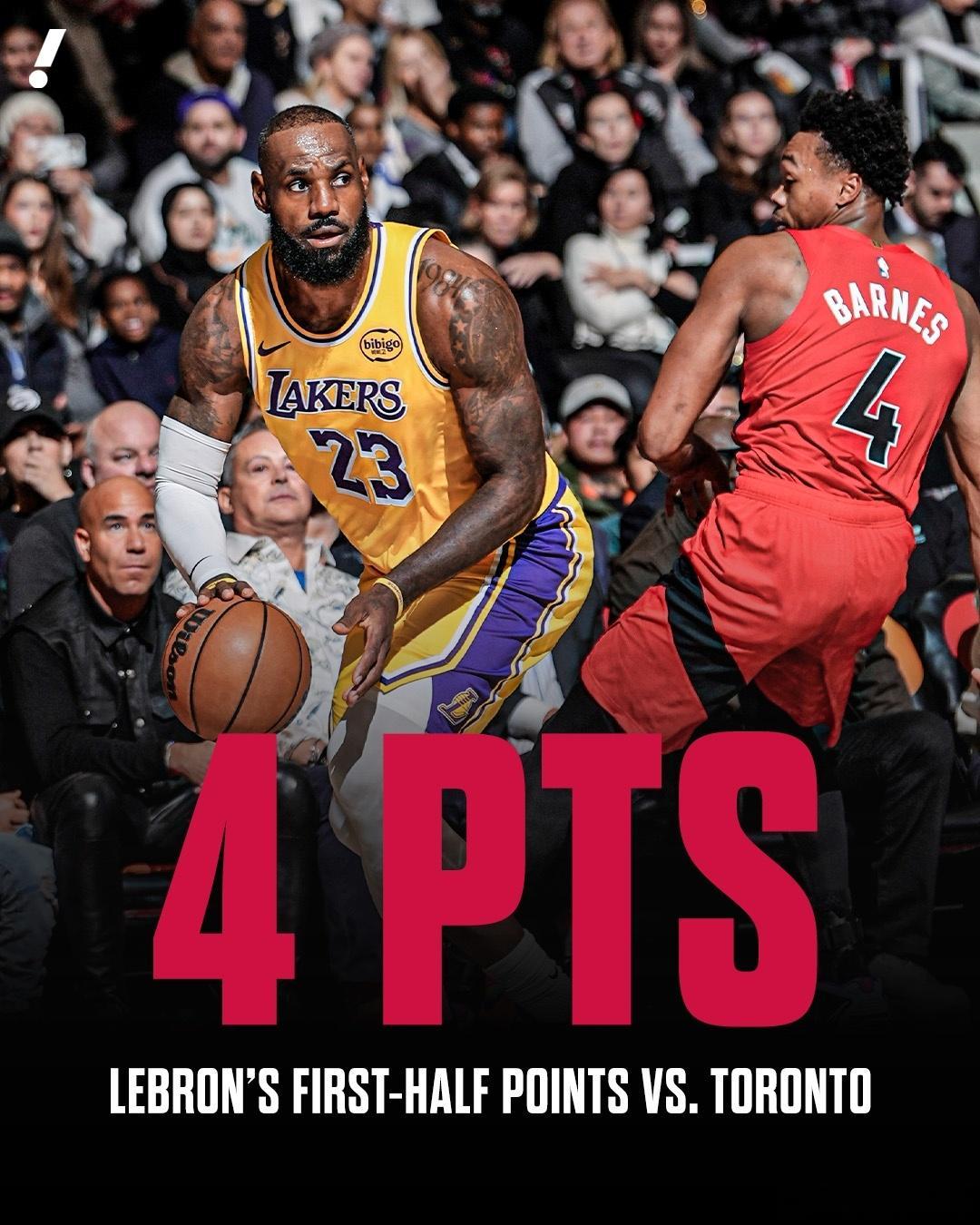 詹姆斯 湖人半场67-58领先猛龙,詹姆斯仅得4分!这会是他的最后一个赛季吗?湖人vs猛龙