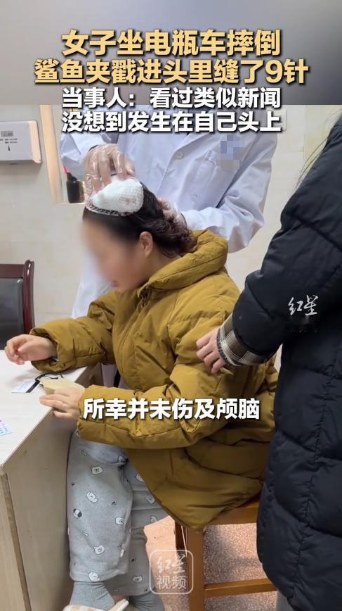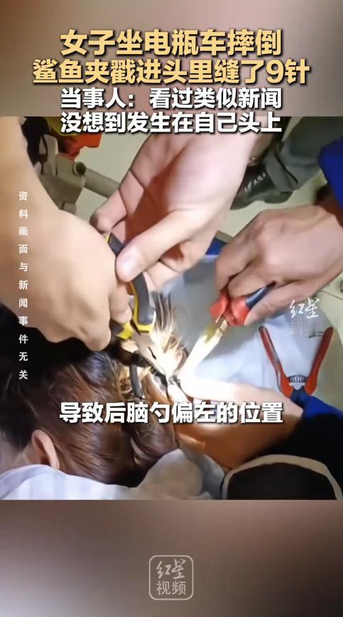 悲剧还是发生了!12月3日,河南信阳,一女生酒后乘坐电瓶车,结果不慎摔倒,导致发夹扎破头皮,深深嵌进脑袋里,瞬间流了一地鲜血!送往医院检查后,幸好没有伤到颅脑,缝了9针后就回家静养了。网友:不幸中的万幸! 经常能看到女孩子头上佩戴着各式各样的发夹,虽然装饰起来很好看,能够将头发固定住,但有时这个发夹也会成为安全隐患,令人防不胜防。 前不久,姜女士和朋友聚餐时,喝了一点酒,之后便由老公骑车来接她回家,只是没想到,姜女士在回家的路上竟然从车上摔了下来。 由于是后脑着地,头上的鲨鱼夹瞬间扎进脑袋!姜女士只感觉头部传来剧痛,用手一摸发现都是血,当即被吓得说不出话来。 老公急忙将她送去医院检查,医生在看了片子后,发现发夹扎到了姜女士后脑勺偏左的位置,并没有伤到颅脑,如果再往中间偏一点,那可就危险了。 缝合好伤口后,姜女士就被送回家休养了。 很多女人对于头上的发夹不以为意,觉得这就是个装饰品,而且还是塑料的,摔倒了也不会伤得多严重,可是就是这份疏忽,才导致很多意外的发生! 安全没有小事,常佩戴发夹的女人最好在坐车、运动前,就把发夹先取下来,以免发生意外。 信息来源:《女生意外摔倒,头皮破裂缝九针!原因竟是后脑上佩戴的鲨鱼夹!》河南都市频道