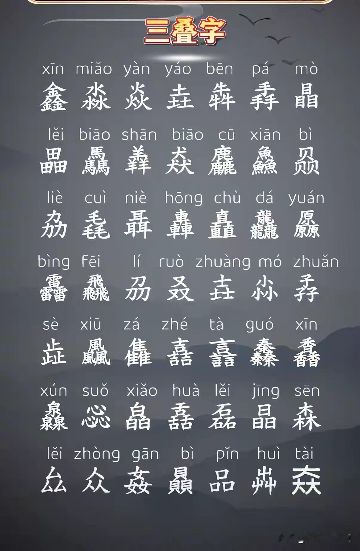 汉字里的“叠罗汉”,这4个相同字堆一起,认识3个算你厉害! 汉字不光有三叠字,还有更狠的四叠字。四个一模一样的字“叠罗汉”,又难认又好玩! 比如四个“火”堆成“燚(yì)”,读起来就像火苗“滋滋”烧;四个“雷”凑成“䨻(bèng)”,光看字形都觉得雷声震天;四个“日”叠成“朤(lǎng)”,古意同“朗”,自带明亮感;连四个“草”(古写“屮”)都能拼成“茻(mǎng)”,指丛生的野草,画面感直接拉满! 这些字看着复杂,其实藏着古人的智慧:用重复的字形强化含义,比如“燚”是火势旺盛,“䨻”是雷声密集,既形象又凝练。 你能认出几个三叠字、四叠字?评论区晒出你的“识字段位”!