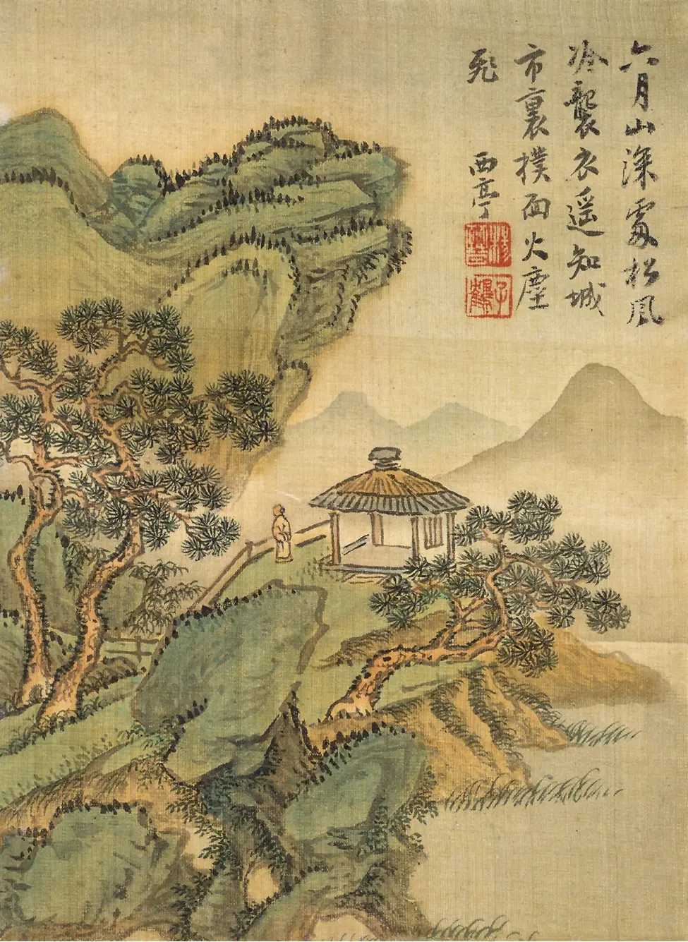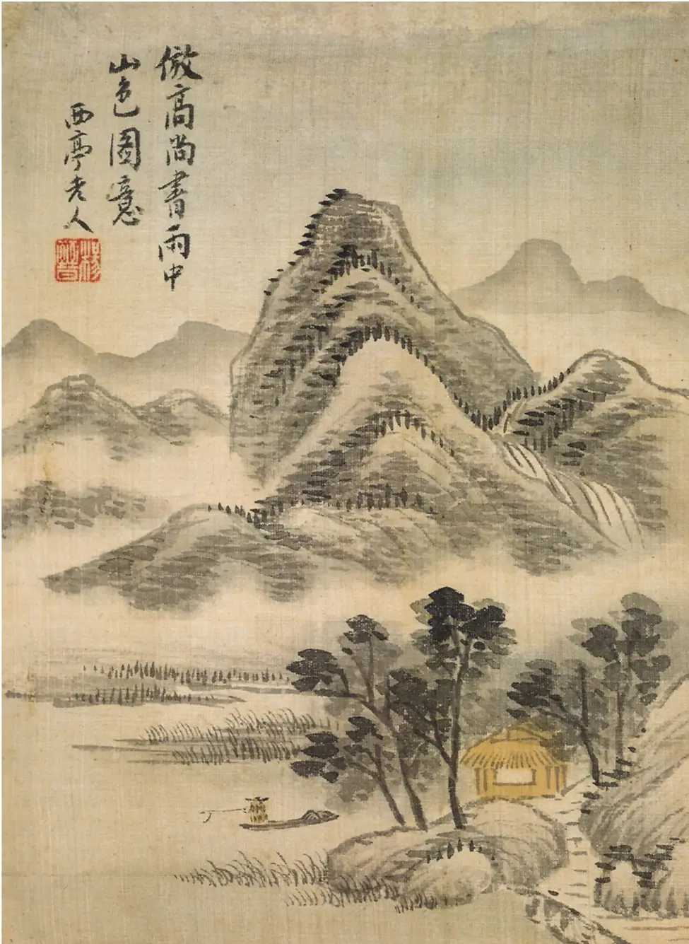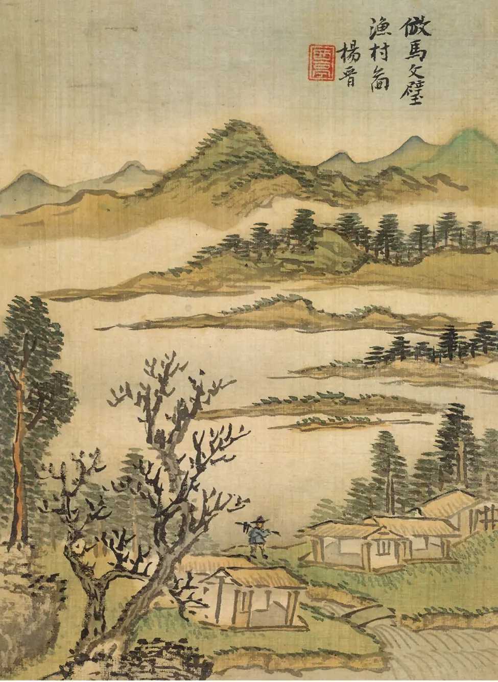 清 杨晋 仿古山水册。杨晋(1644-1728),字子和,号西亭,常熟人,师承清初画家王翚。其山水画风清新恬淡,曾参与绘制《康熙南巡图》。他兼擅人物、花卉,尤以画牛闻名,常为王翚画作代笔点缀景物、人物、轿马牛羊等。这就是中国风遇见艺术
