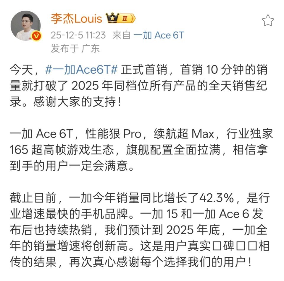 一加Ace6T 首发价格公布:12+256 2399元,全体起立!!!!!!一加