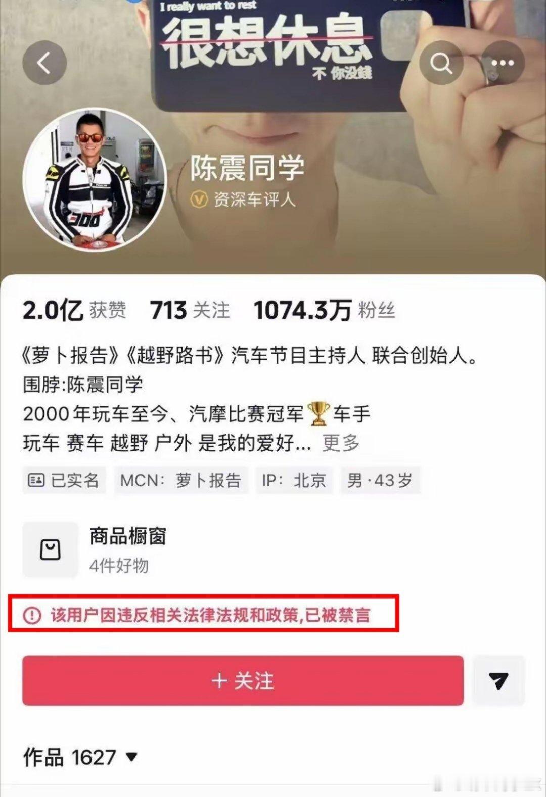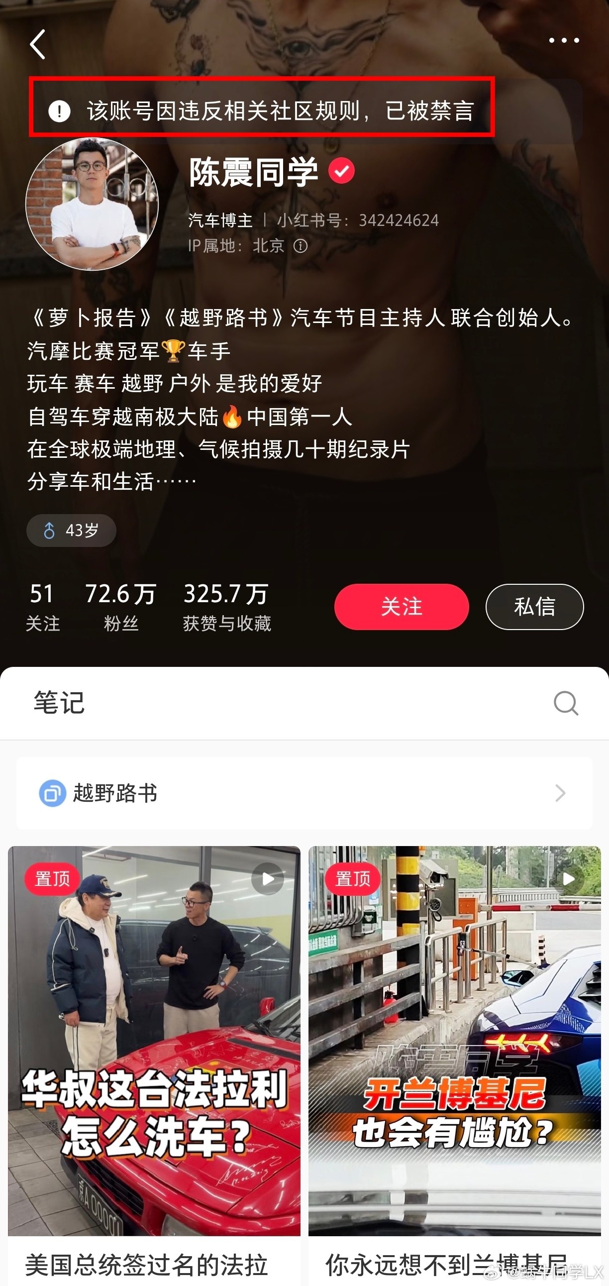 一觉醒来,发现知名车评人,千万粉丝博主“陈震同学”在微博,B站,抖音,快手,头条,小红书等多个社交媒体平台的账号都被禁言了,发生什么事了,有知道原因的吗?翻开评论区,果然说什么的都有。陈震多平台被禁言