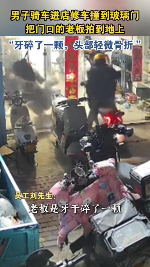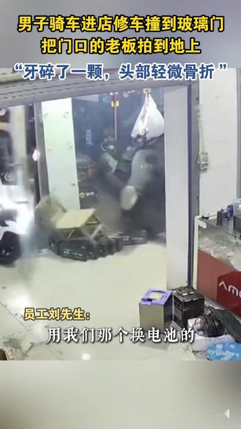 “心急吃不了热豆腐!”12月3日,河南南阳,一外卖小哥的电车快没电了,于是急忙前往修车店换电瓶,结果误将刹车当成油门,直接撞开玻璃门,把坐在一旁的老板给撞飞了!去医院检查,发现牙碎了一颗、头部骨折。网友:来大生意了! 外卖小哥每天穿梭在大街小巷里送餐,因此需要一辆长续航的电动车,但即使电瓶容量再大,也会用没电,如果等待充电就太浪费时间了,更换电瓶才能节约时间。 当天晚上,一外卖小哥送餐途中,突然发现电车快没电了,于是立即导航到附近的修车店,打算更换一个电瓶。 可由于过于着急,小哥将刹车当成了油门,直接冲了过来! 而坐在门后和员工聊天的老板在看到灯光后,知道来生意了,于是转头过来查看情况,没想到直接被玻璃门撞飞了出去! 小哥和店员急忙将老板搀扶起来,然后送往医院救治,医生检查后发现,男子的头部有些轻微骨折,需要在家静养一段时间。 小哥也是非常责任,后悔没有提前减速,不然就不会发生这种意外了。 网友看后表示,再忙也不能忽视了安全,人在着急的时候,往往会变得粗心,大家一定要学会控制情绪,这样才能尽量避免意外的发生。 信息来源:《男子骑车进店修车撞到玻璃门,把门口的老板拍到地上,“牙碎了一颗,头部轻微骨折”》冀时