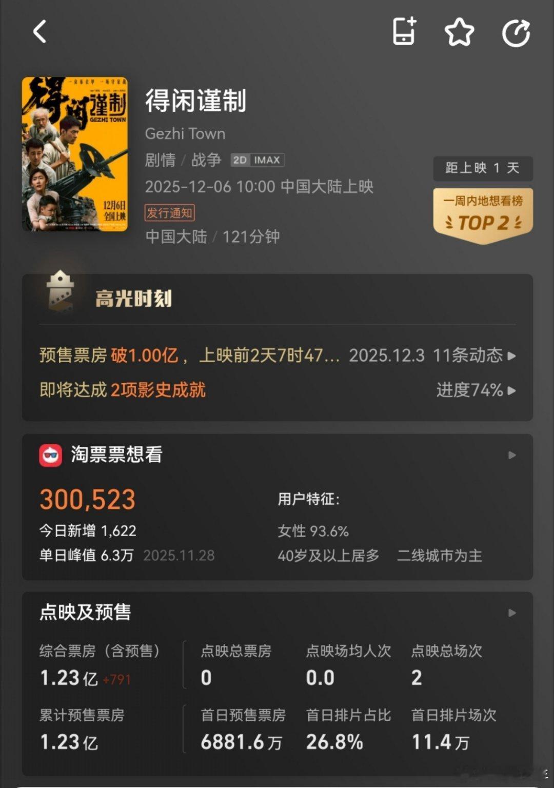 肖战得闲谨制想看人数破30万肖战得闲谨制预售人次破300万预售阶段就交出1.2