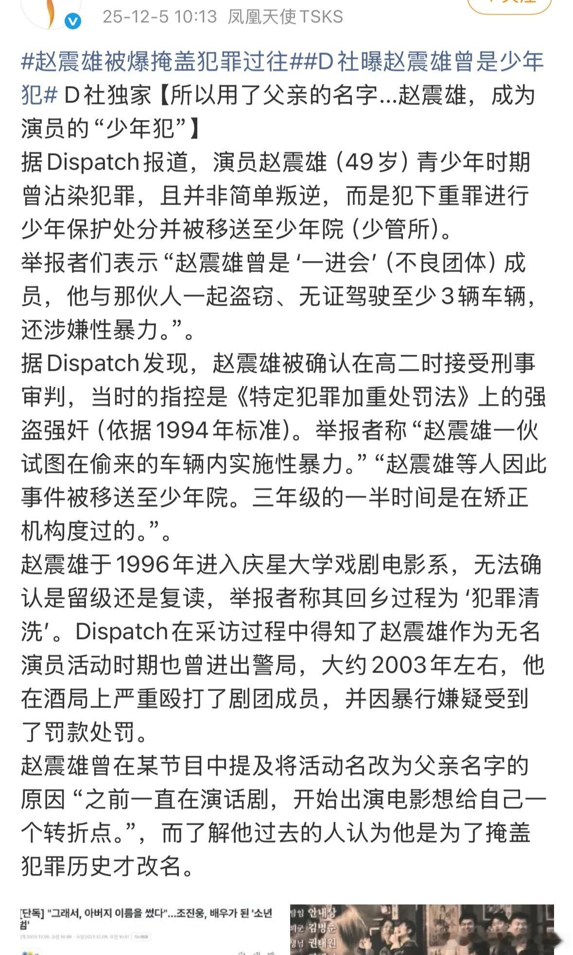 D社曝赵震雄涉嫌强盗性暴力