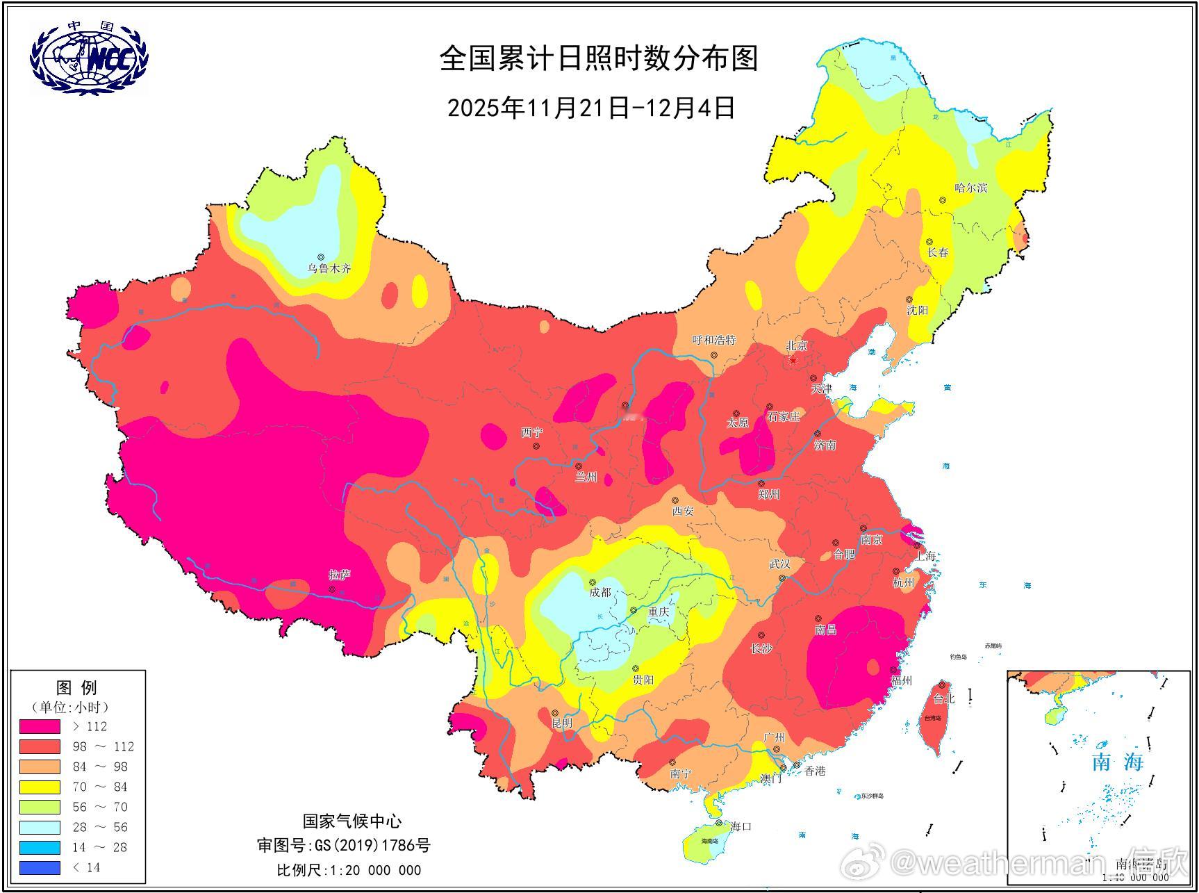 【南方日照明显偏多】11月下旬以来,晴天多、雨雪少,我国多地的日照充足。尤其是南方多地,11月21日-12月14日期间,平均每天日照比常年偏多3小时以上(图1紫色区),福建江西浙江部分地区,平均每天日照超8小时。四川盆地对于其他地区,看似日照少,但对比自身,也明显多于常年同期。