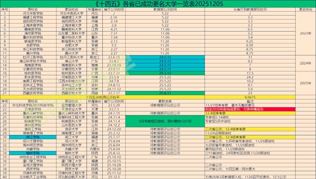 “人往高处走,校往大名改”——又一波大学来啦!你们瞅这张表没?2025年都过
