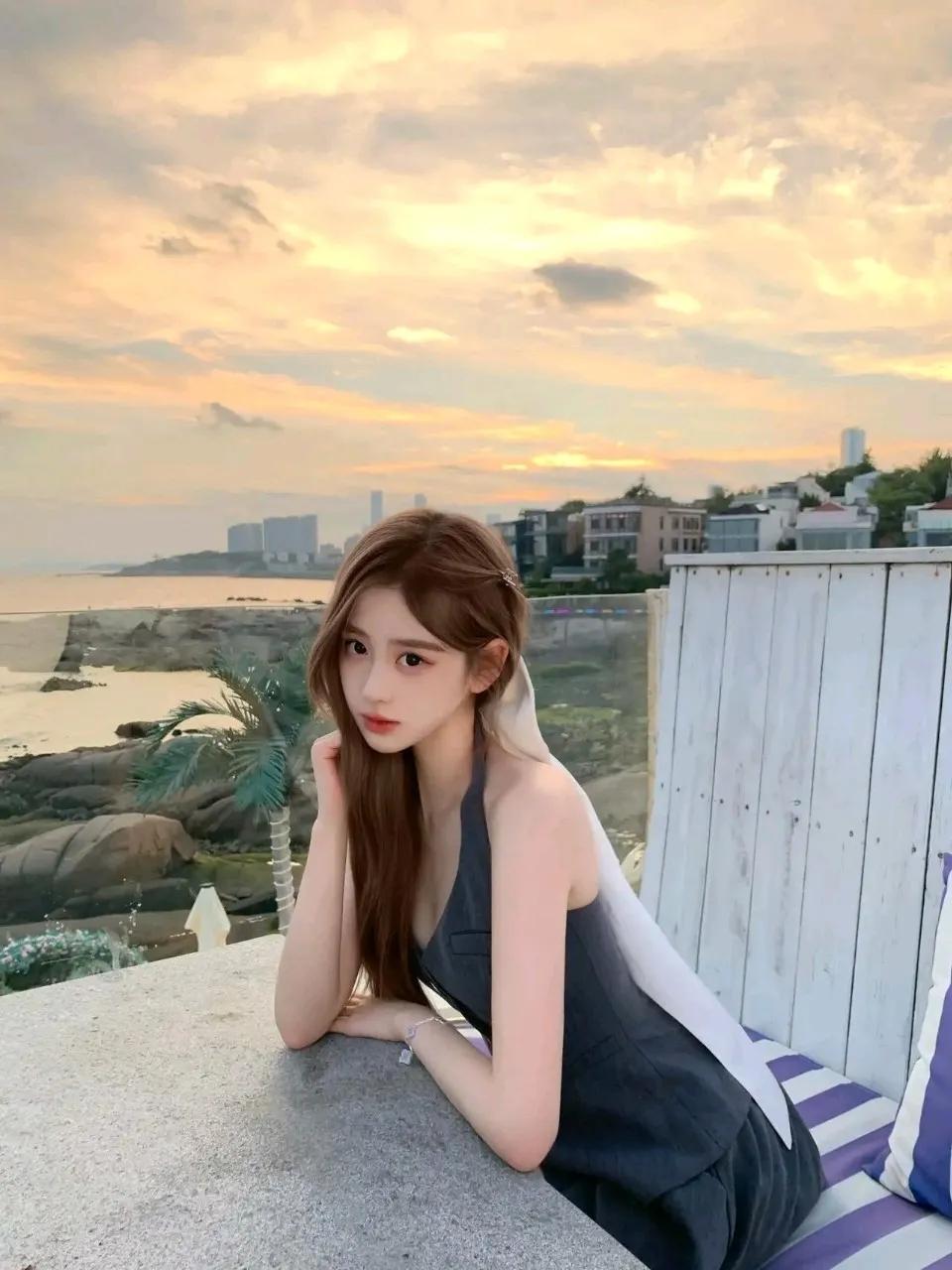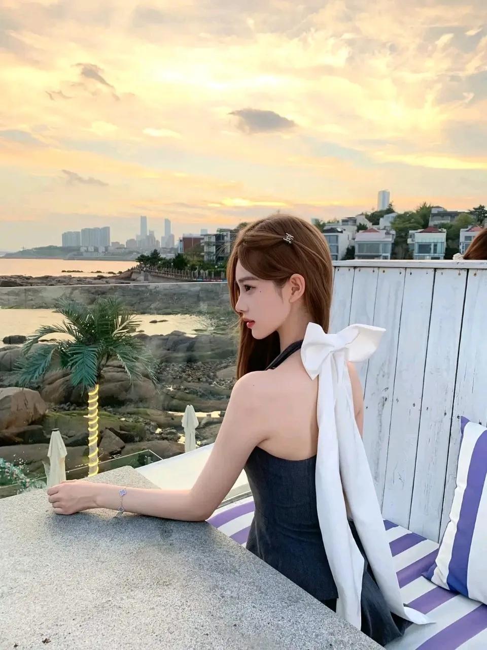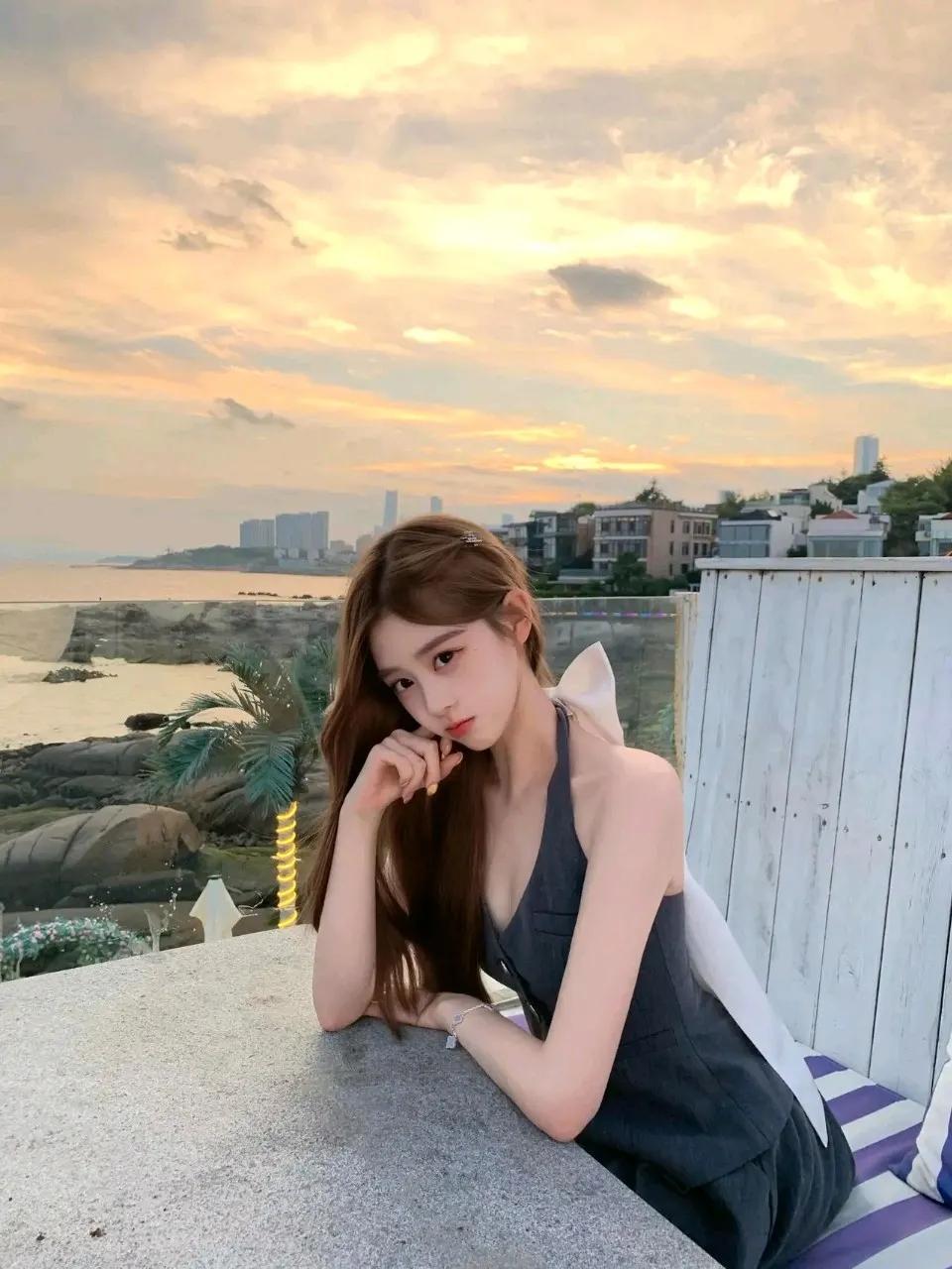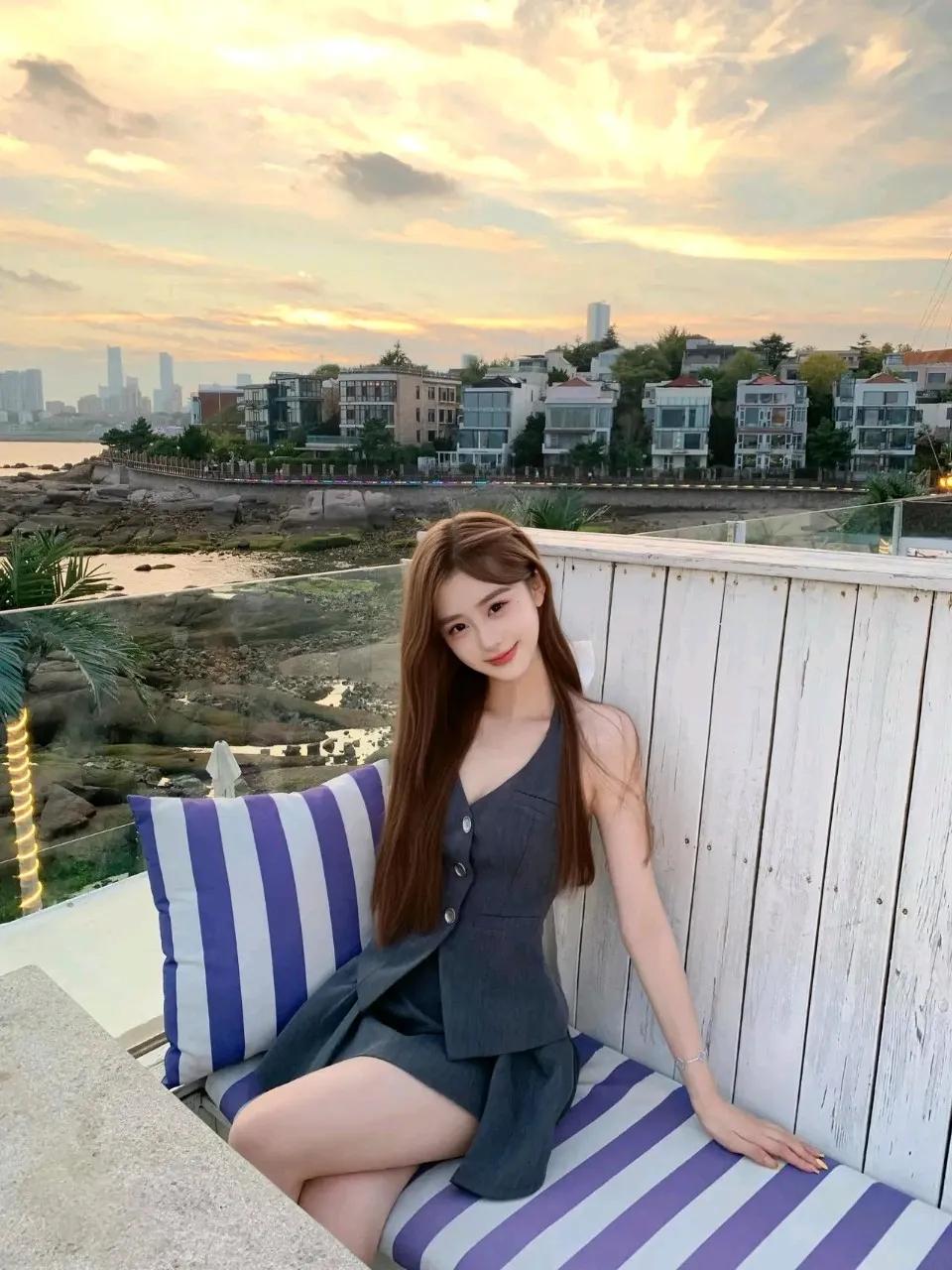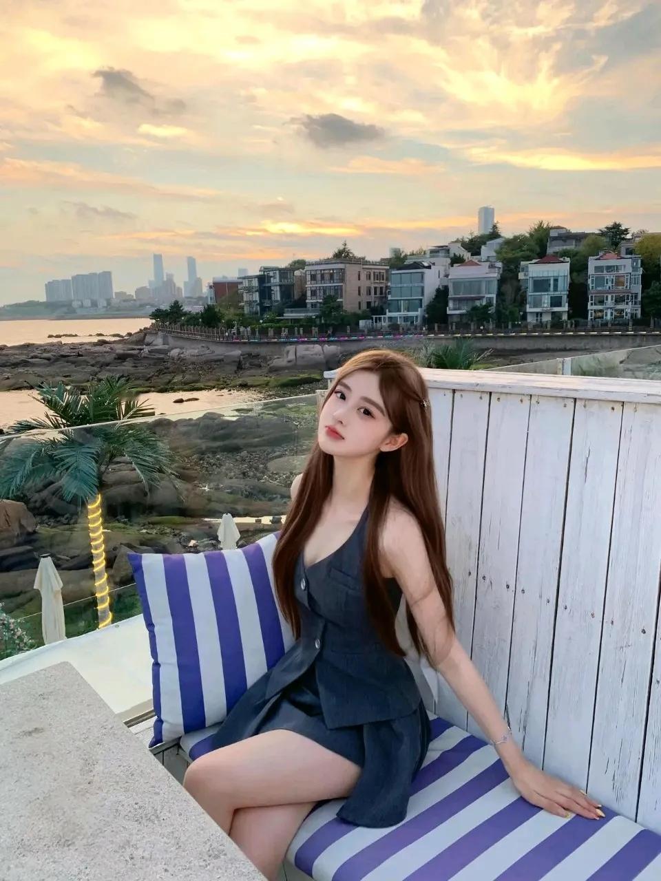 少女摄影|NO.0155期 纯欲少女天台随拍 蓝色吊带露背裙装展现完美身材