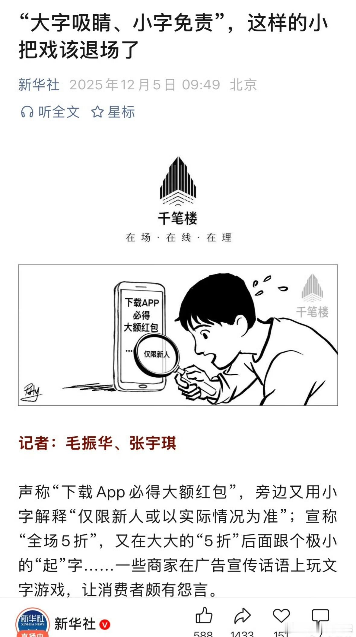 新华社批大字吸睛小字免责官媒纷纷痛批,大字吸睛小字免责是时候该成为历史了!