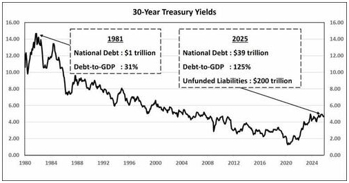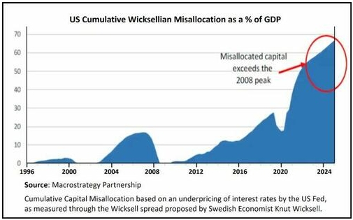 美国经济出大事,2026年时间正合适。唱衰很简单,三个大泡沫一起发作2025年美国混过去了,问题暴露了一堆,AI出了什么问题清楚多了。加上前些年积累的,美国三大泡沫都很明显了,2026年可以盯着看表演,出大事就好看了。图一,第一大泡沫,美债。这个我2019年就开始唱衰,搞得很不错,人人都知道了。1981年美债才1万亿美元,2025年39万亿美元了。以前国债总量少,利率加到14%以上利息也不怕。现在总量大了,4%的30年期国债利率都吃不消,利息成为美国政府第二大支出超军费,一年1.2万亿美元。图二,第二大泡沫,房地产。因为美债和AI太抓眼球,对美国房地产泡沫的关注没多大。其实现在美国房价高涨,已经比2008年房地产泡沫破灭时还可怕了。传统理论上说,收入的30%用于房产支出,是较为合适的。按现在的美国房价,“合格”的收入要高于实际中位数50%,才能实现安全的支出水平。美国房地产也处于前所未有的大泡沫中,2024年底美国房地产总价值创历史新高,约达50万亿美元,而2006年的泡沫前峰值是23.8万亿美元。房地产占美国家庭总资产比例从2008年约23%升至2024年28%。图三,人工智能大泡沫,用威克塞尔利差与资本错配来衡量,超过2008年峰值水平。威克塞尔利差为零的时候,资源充分利用,价格稳定,不狂热也不萧条。正利差的时候,是经济扩张期,借贷成本过低,刺激投资过热;负利差时是经济收缩期,借贷成本过高,抑制投资。美国由于2008年之后借贷成本过低,再加上近期的AI投资情绪狂热,威克塞尔利差一直为正,目前累积的威克塞尔资本错配(Wicksellian Misallocation)占GDP比重一路高涨,达到了GDP的60%以上。美国经济、房地产与股市都处于前所未有的大泡沫中。就是这个性质,可以狠狠盯着唱衰。结构是清楚的,泡沫破灭出大事的时间点肯定说不清楚,我希望是2026年,看着挺合适的。