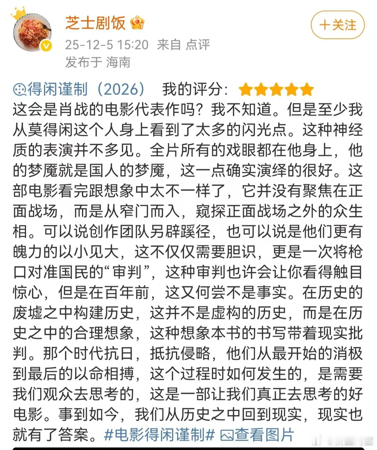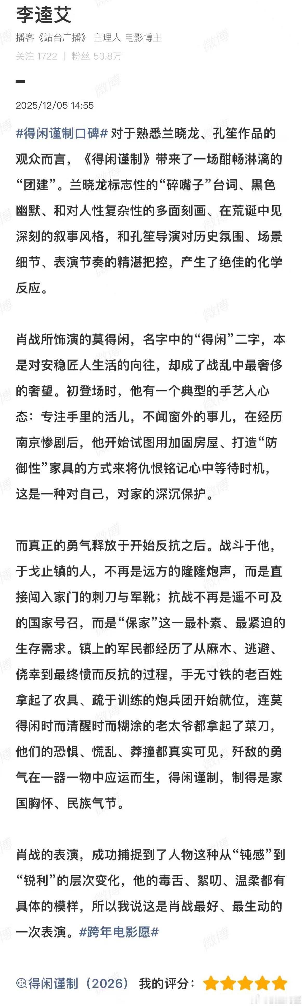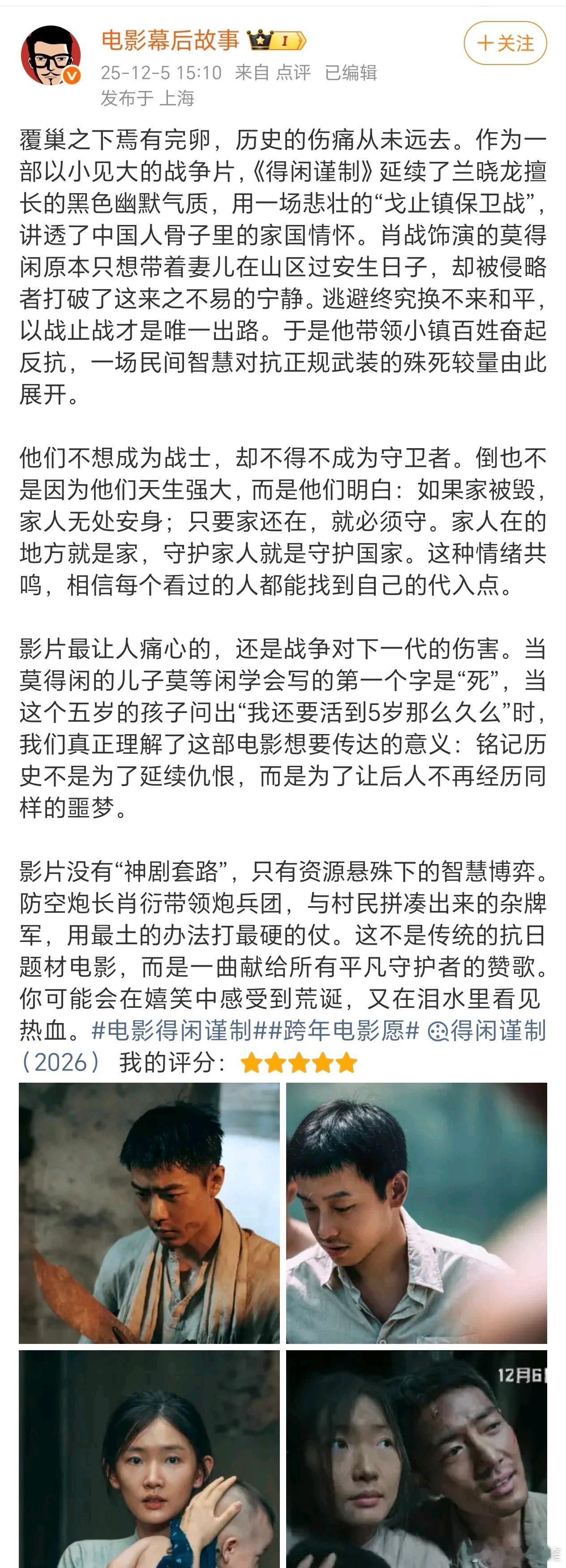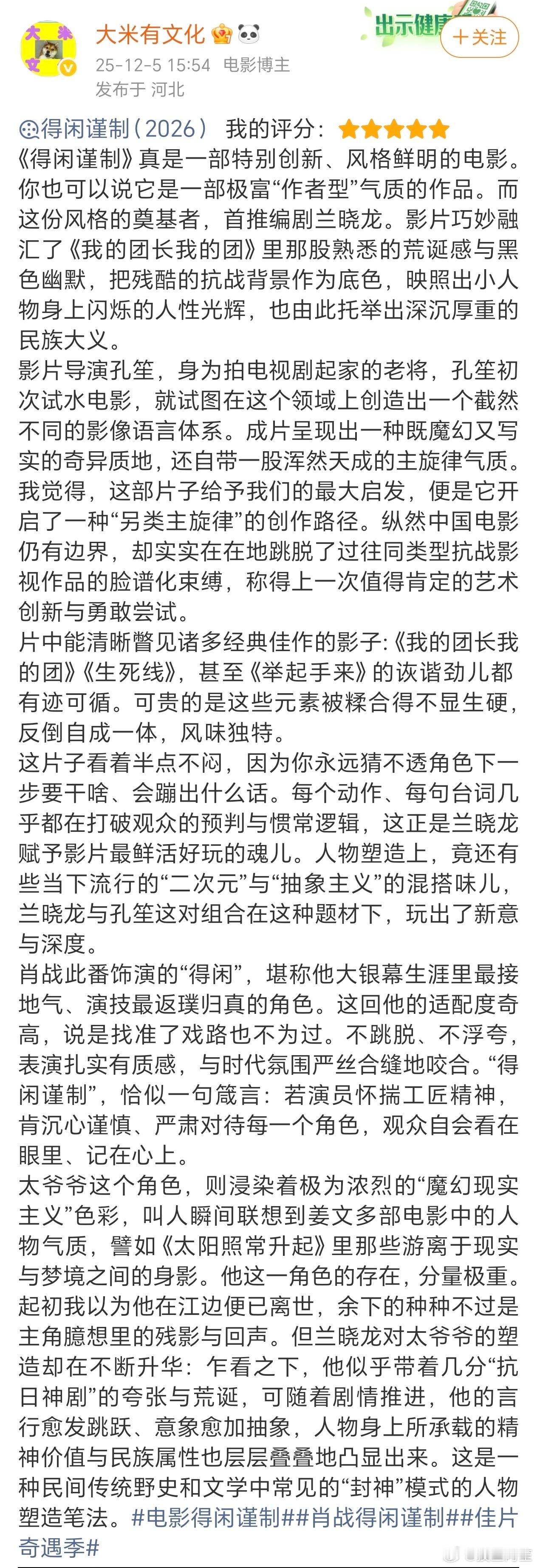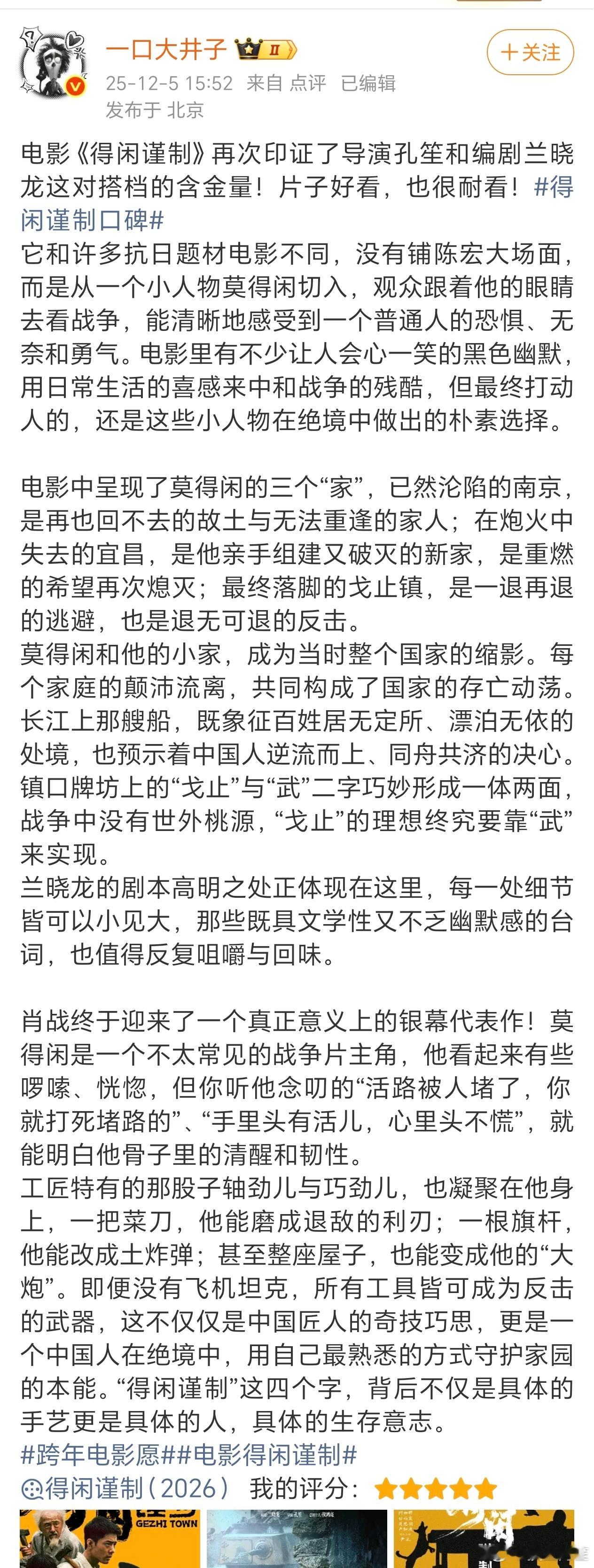 从提前点映的影评来看《得闲谨制》的口碑已经爆开了,影评人和观众纷纷给出5星好评