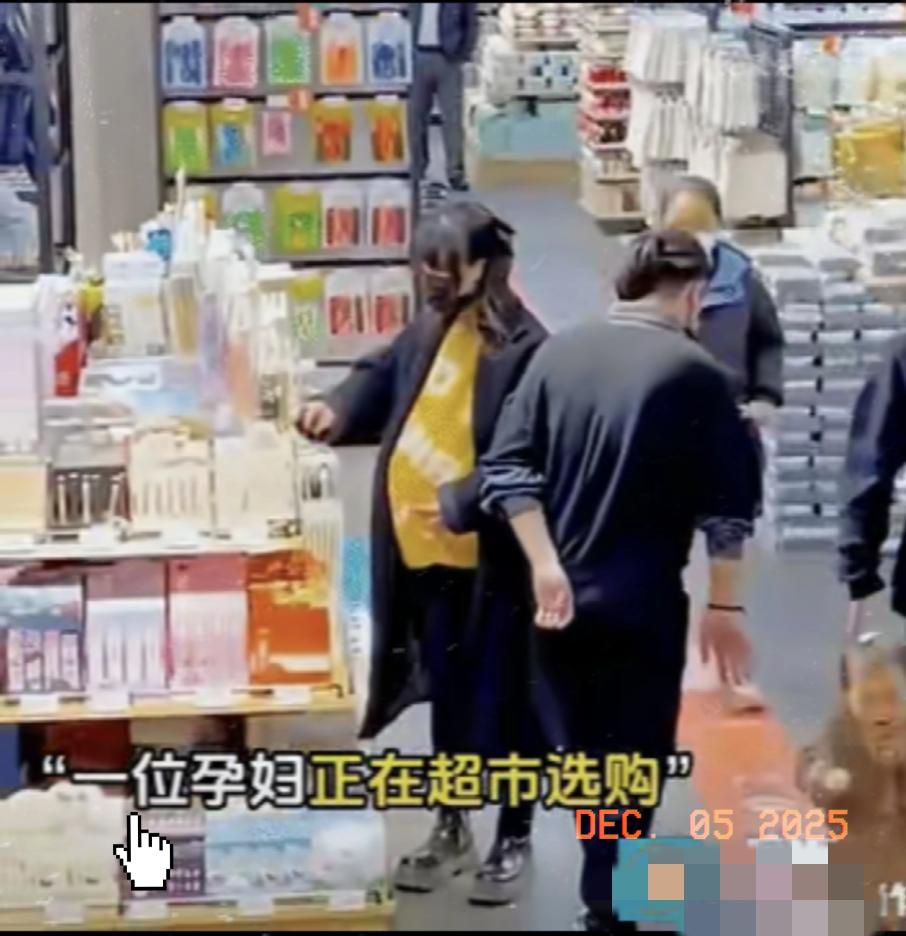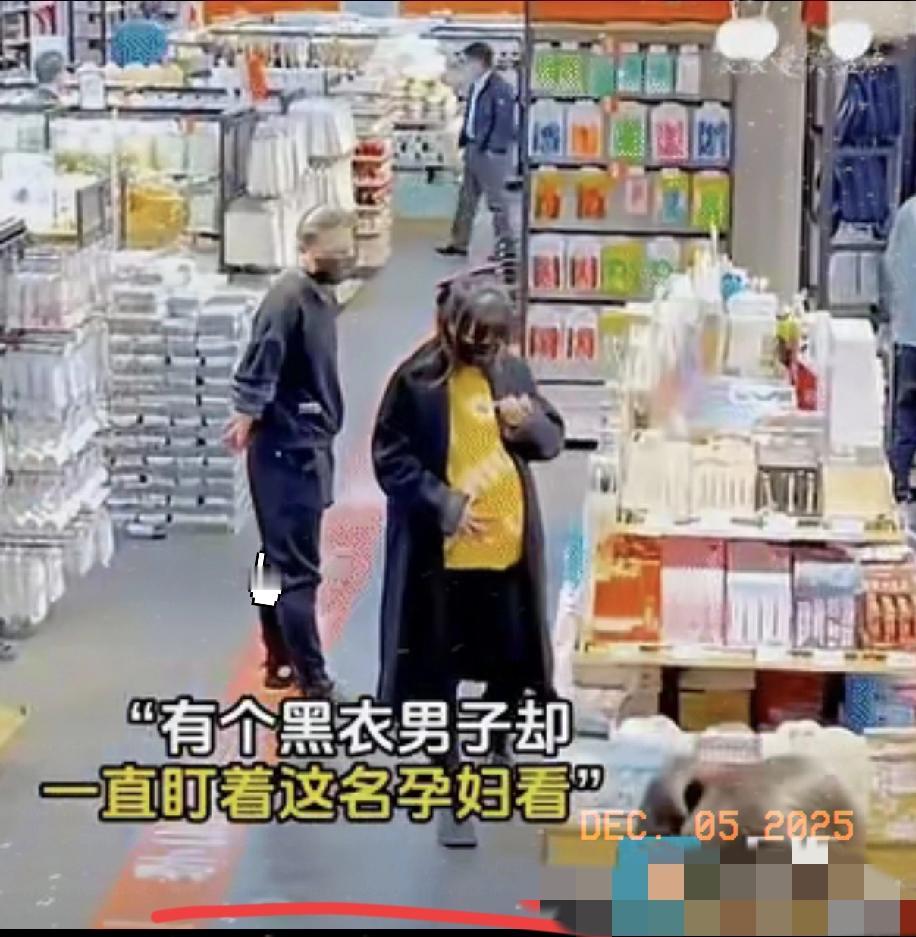 泪目了!一名孕妇正在超市里慢慢选购东西,一男子在经过孕妇身边的时候一直盯着她的后