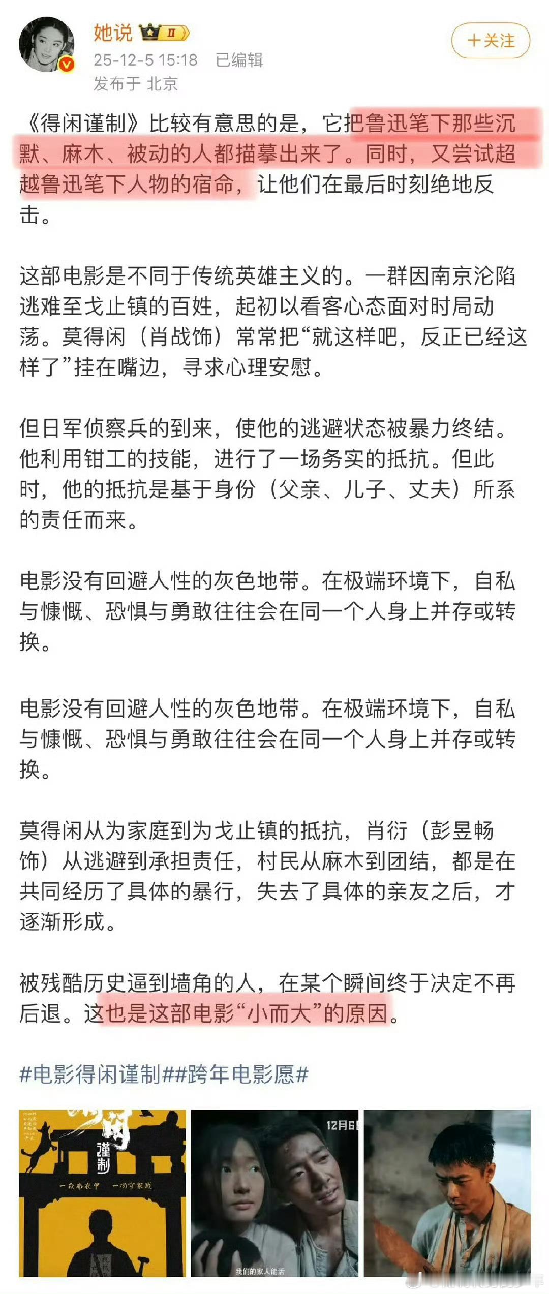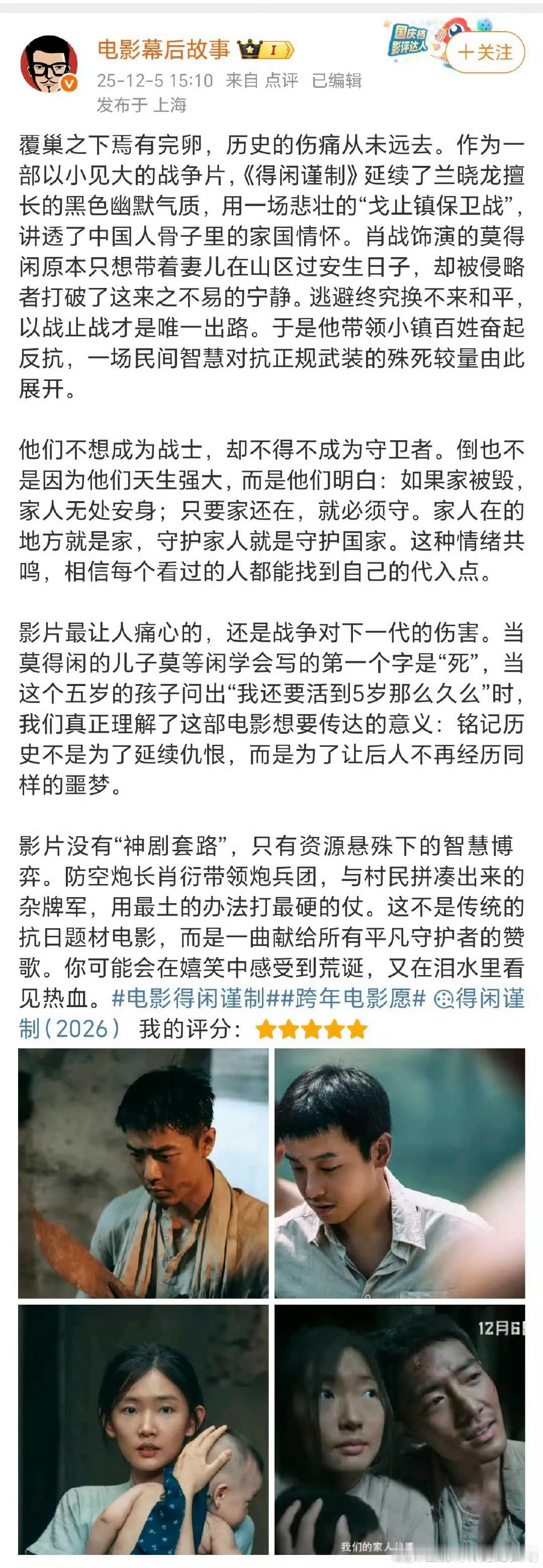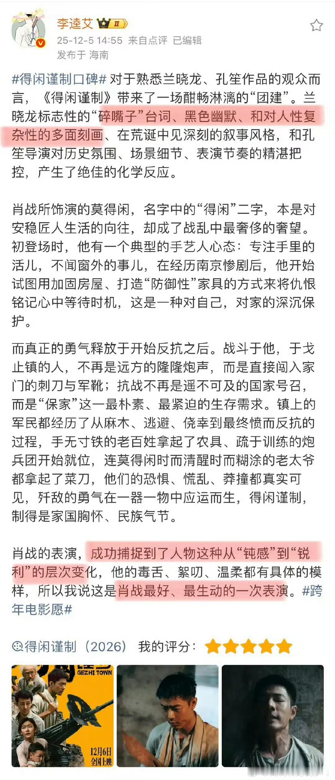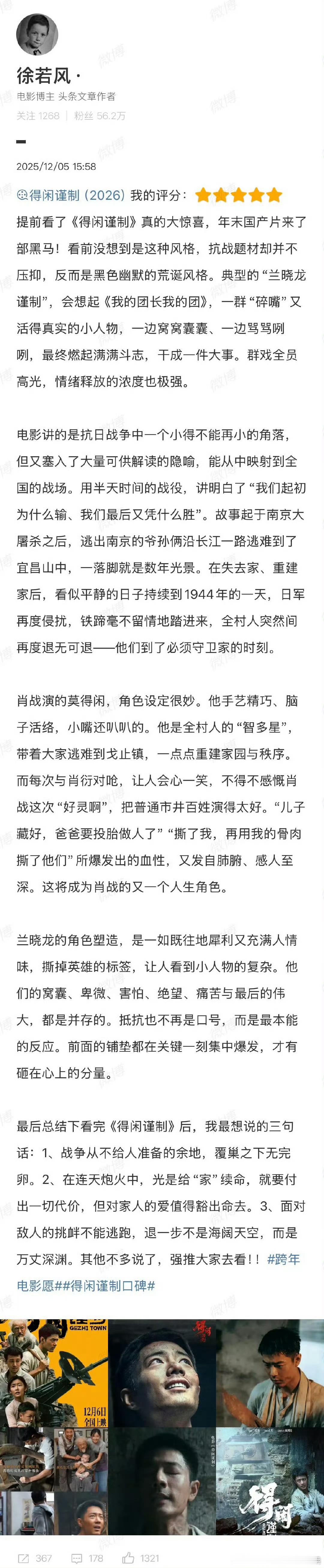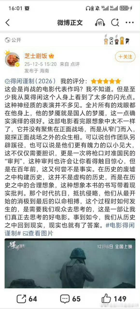 肖战到达宜昌路演《得闲谨制》看片反馈好评莫得闲和百姓们从麻木到反抗,用小人物的反抗,讲透家国大义。肖战演绎从“钝感”到“锐利”的莫得闲,絮叨~毒舌~温柔,《得闲谨制》让平凡人的反抗有了最动人的模样。肖战到达宜昌路演 用得闲谨制打开年末现实娱乐
