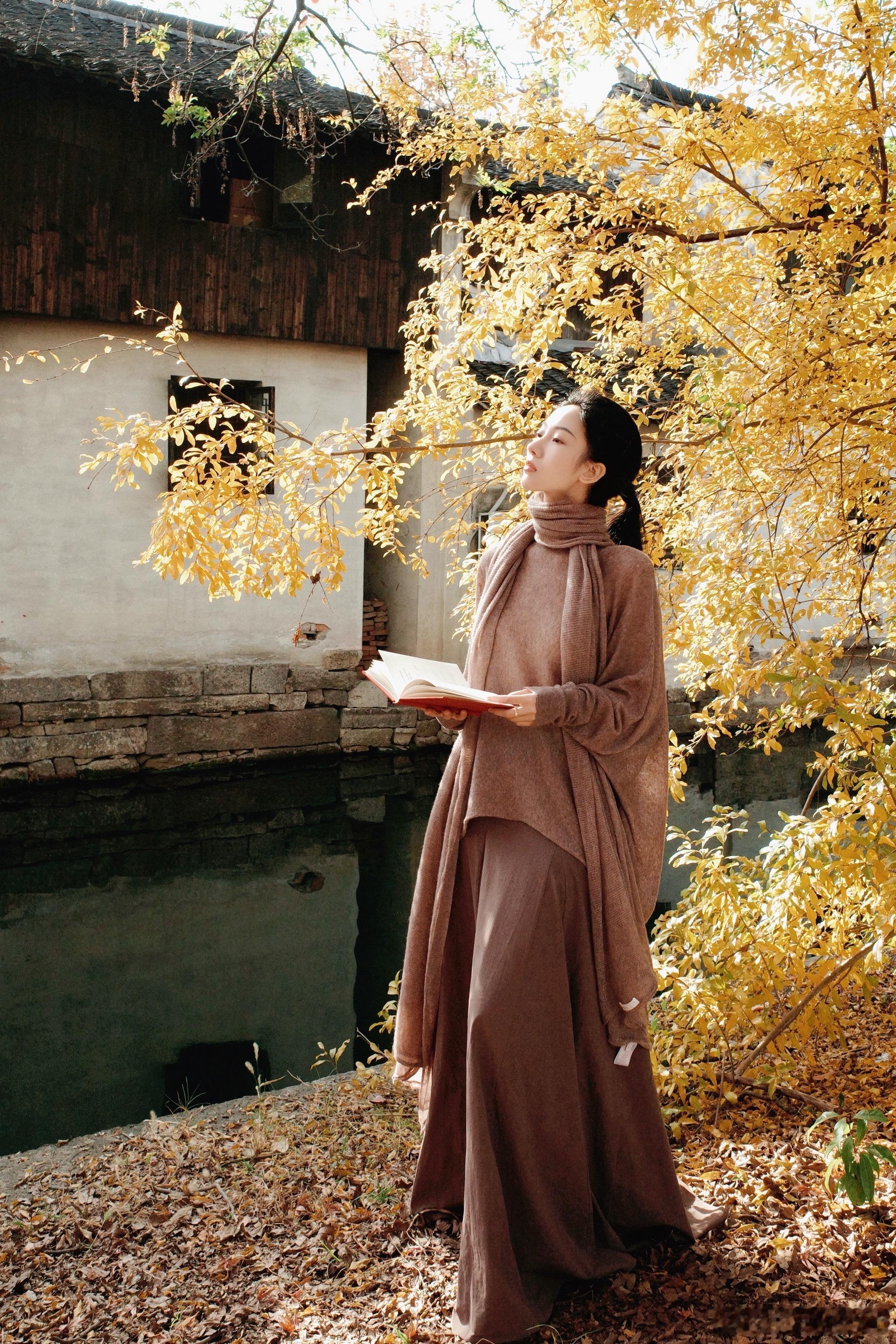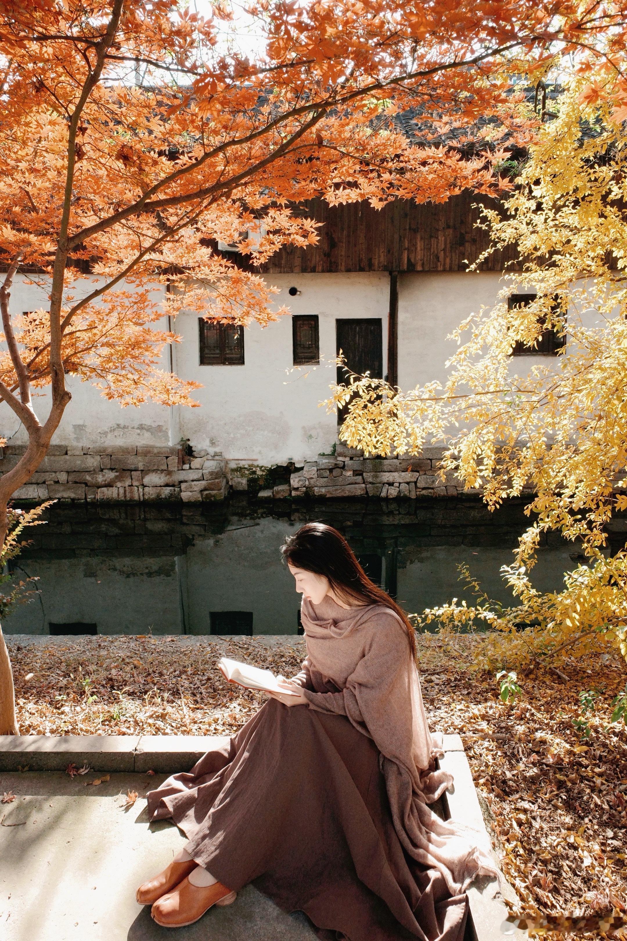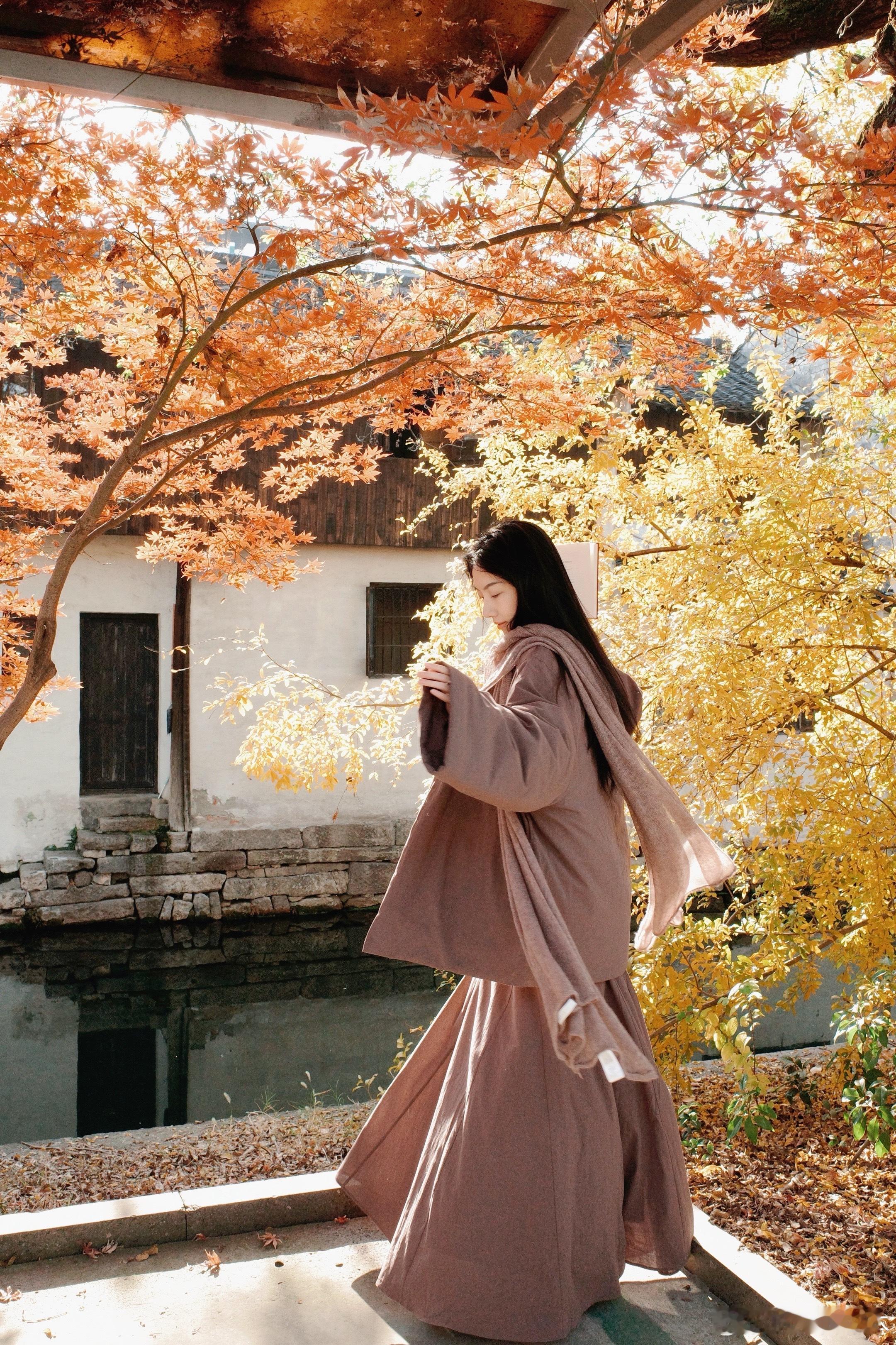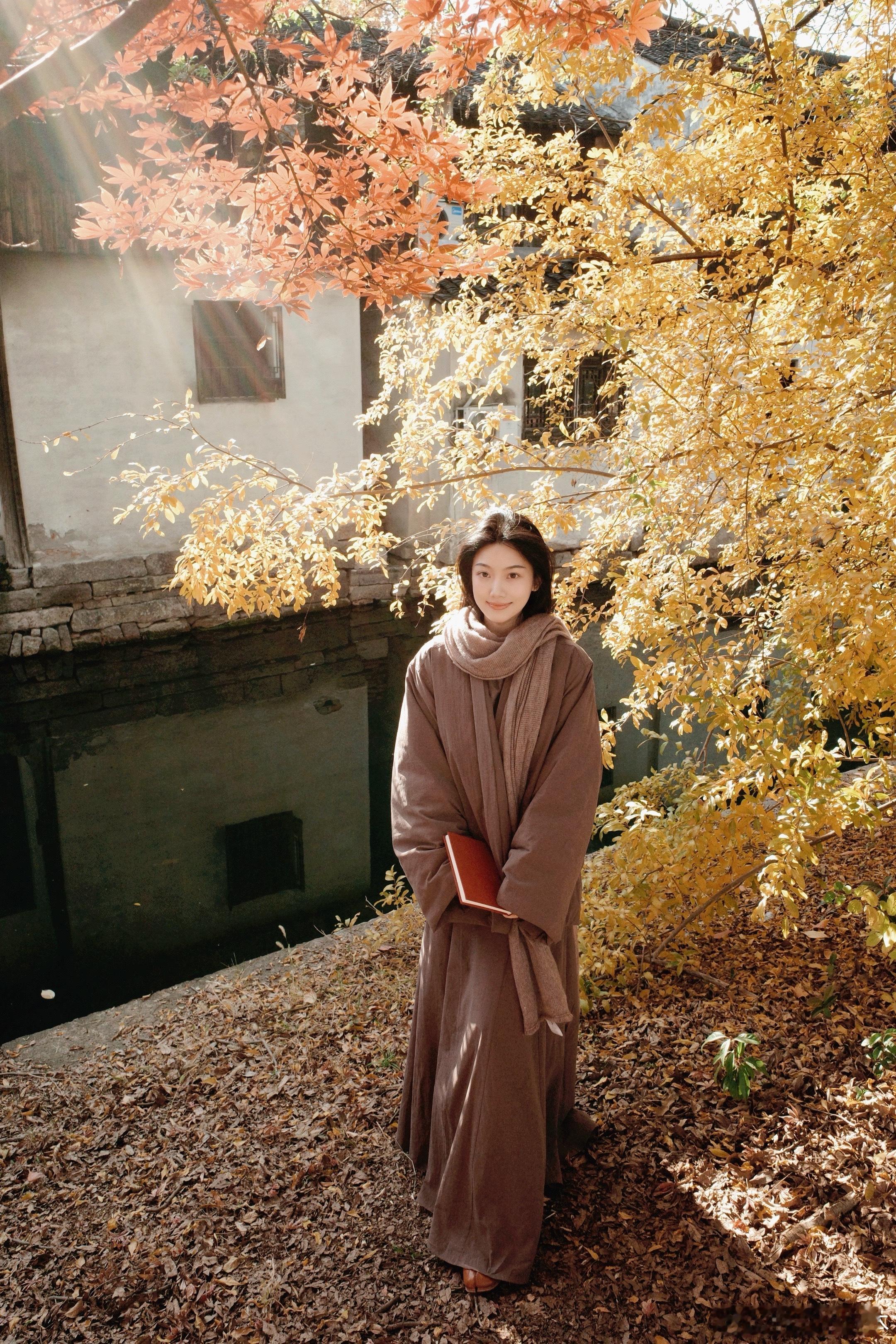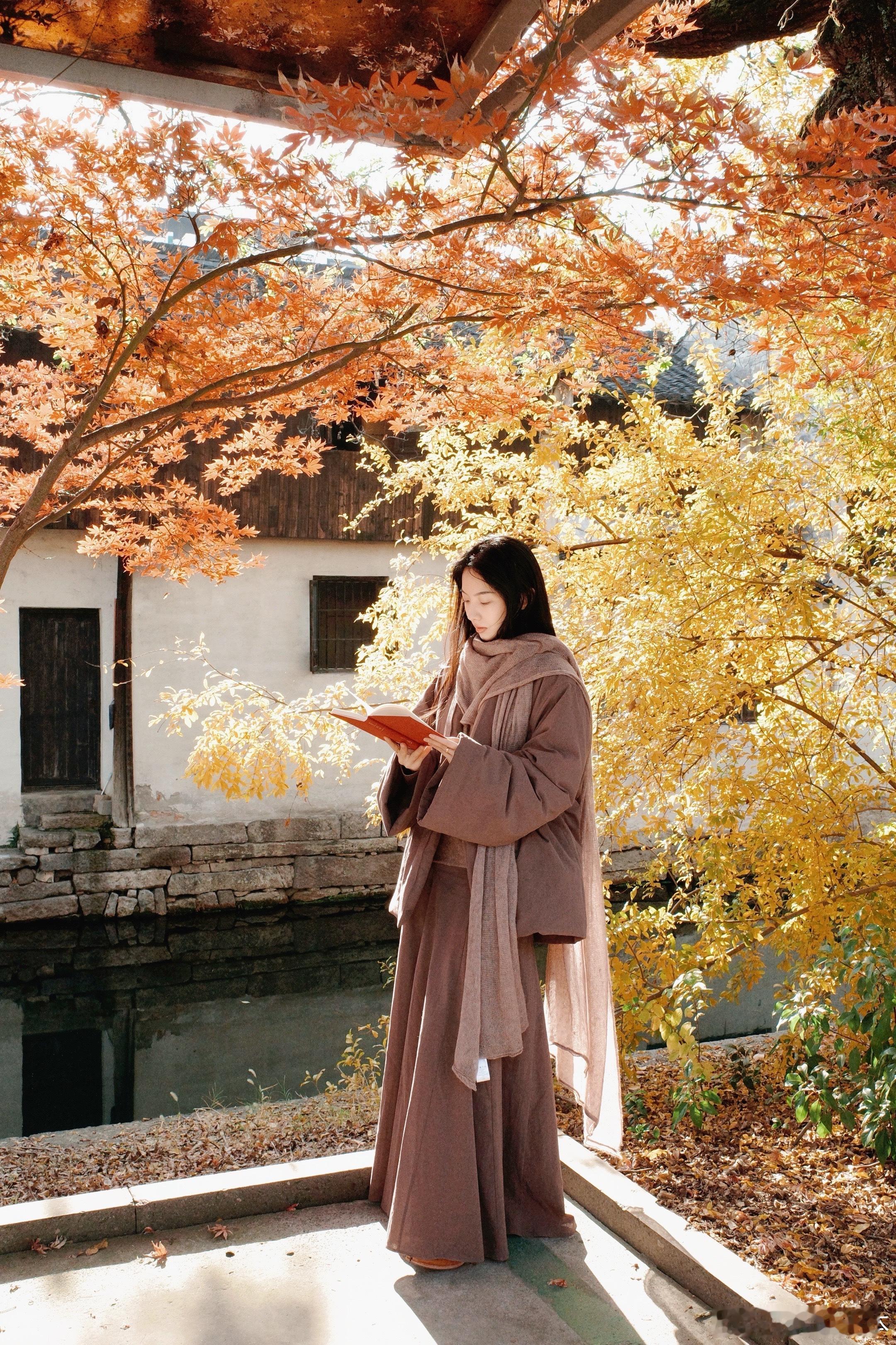 秋光绯色风卷着桂香漫过公园长椅,她一身暖红撞进秋的柔黄里。不是灼眼的