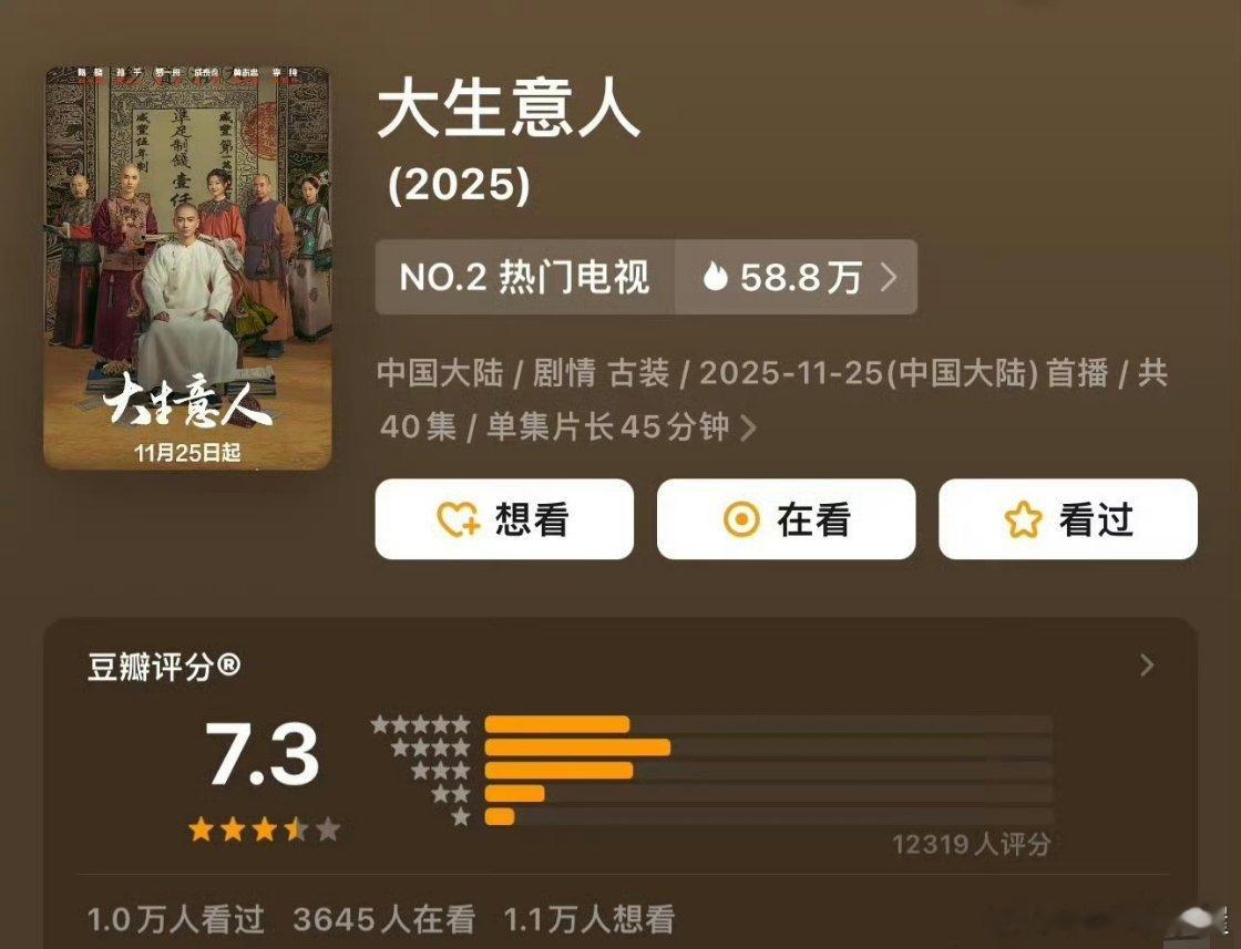 陈晓、孙千《大生意人》和迪丽热巴、陈星旭《枭起青壤》豆瓣都开分了!前者7.3,后者6.3,都很不错的分数了吧!高了还是低了?