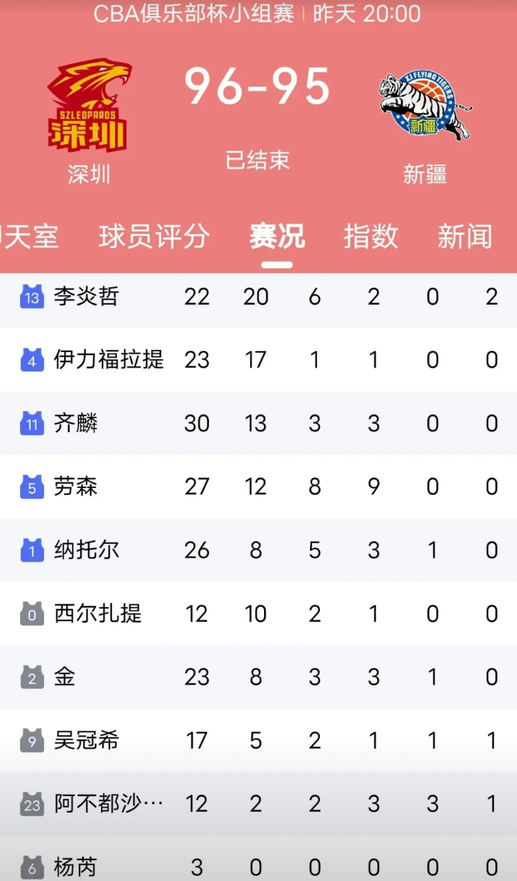 新疆95:96惜败深圳开局两连败,两战基本认清四人实力。