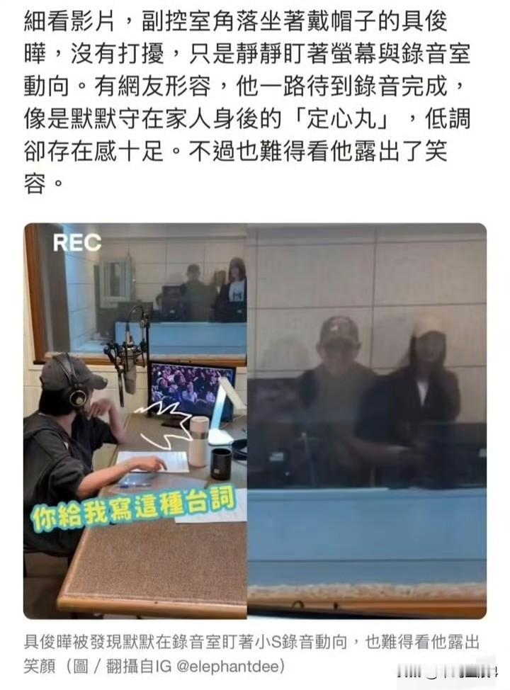 明白了,具俊烨不回韩的原因不仅仅是因为大S,也不是因为遗产,原来是他早把S家当亲人了,S妈视他为儿子,此前小S就透露,黄春梅用韩文叫具俊烨儿子,具俊烨对S妈也十分孝顺,曾有媒体拍到他为S妈捏肩膀的画面,汪小菲可没这么体贴过。 具俊烨还陪小S去录音棚录制宣传片,有具俊烨在S家人很安心。 只是具俊烨在韩国还有一位八十岁老母亲,具俊烨真是大爱。