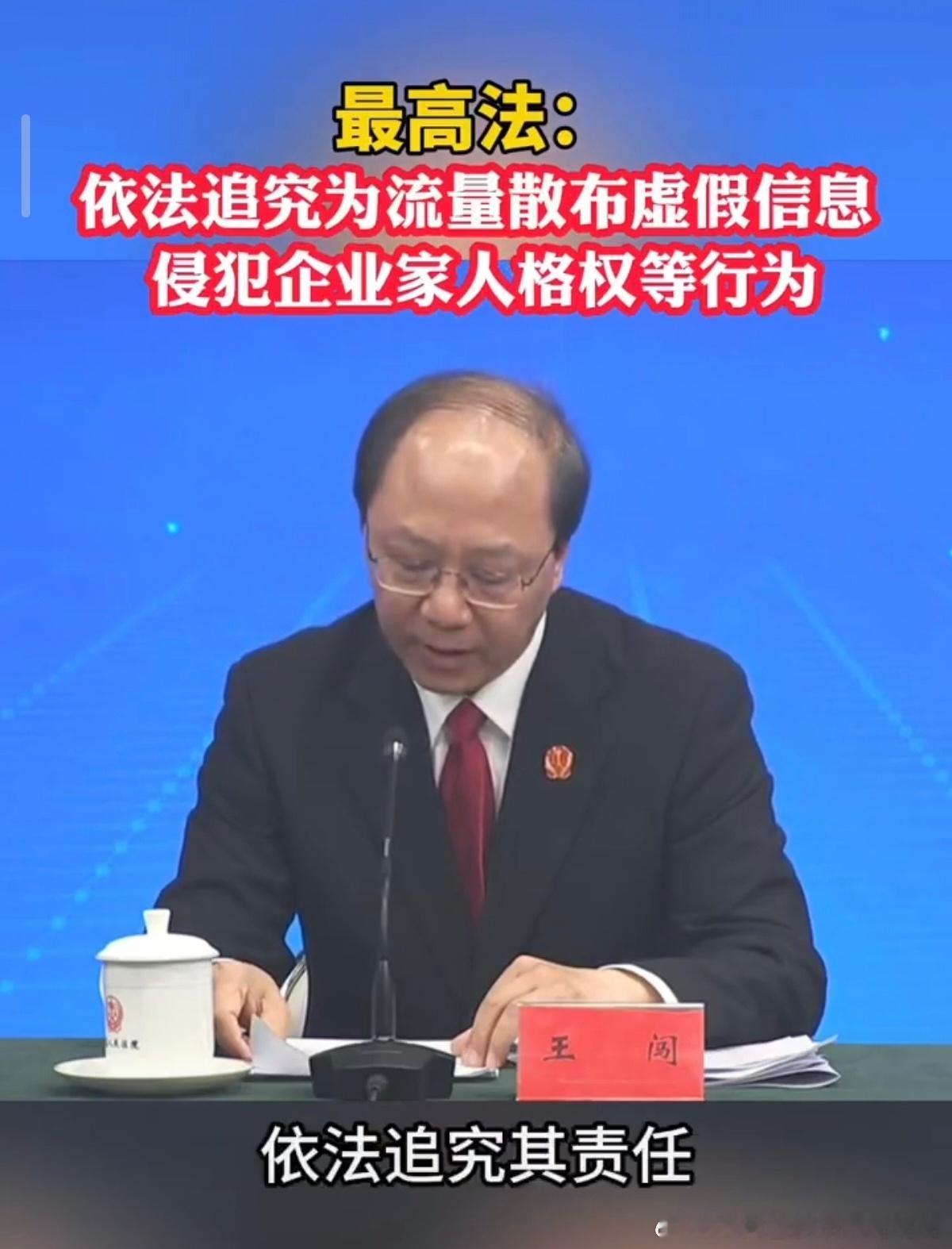 最高法:依法追究为流量散布虚假信息,侵犯企业家人格权等行为