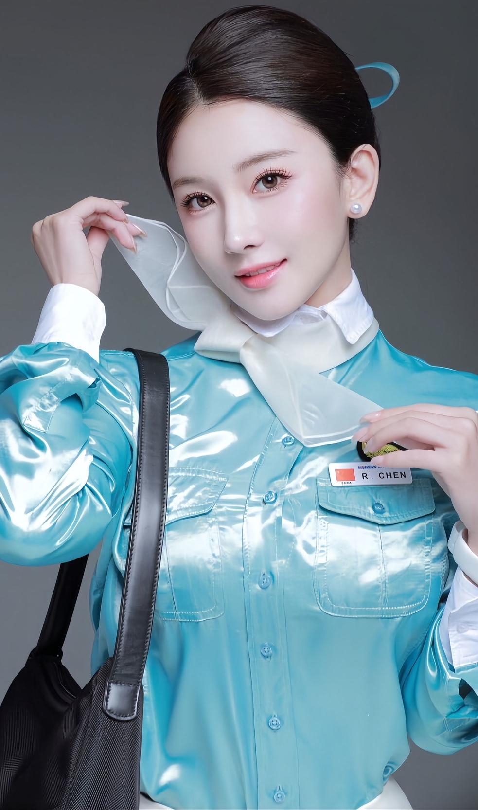 空姐在飞机厨房忙碌准备餐食,专业又优雅!