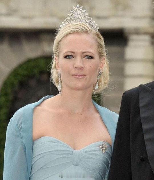 鸢尾胸针,原本有大小不一三只,曾属于西班牙伊莎贝尔二世女王。鸢尾为法国波旁家族的重要图腾,而近现代西班牙王室由法国入主,也姓波旁 这些鸢尾胸针由伊莎贝尔嫁到巴伐利亚旁支的三女玛丽亚·德拉帕兹继承。后来西班牙和巴伐利亚所在的德国都陆续走向共和,珠宝难免遗失或被变卖,但起码还剩下了一枚 瓜路可见玛丽亚·德拉帕兹曾孙利奥波德的老婆厄休拉和儿媳妇安娜时不时都会戴,这家子和瑞典王室挺熟,也算个熟脸?这造型又满钻,基本错不了啦